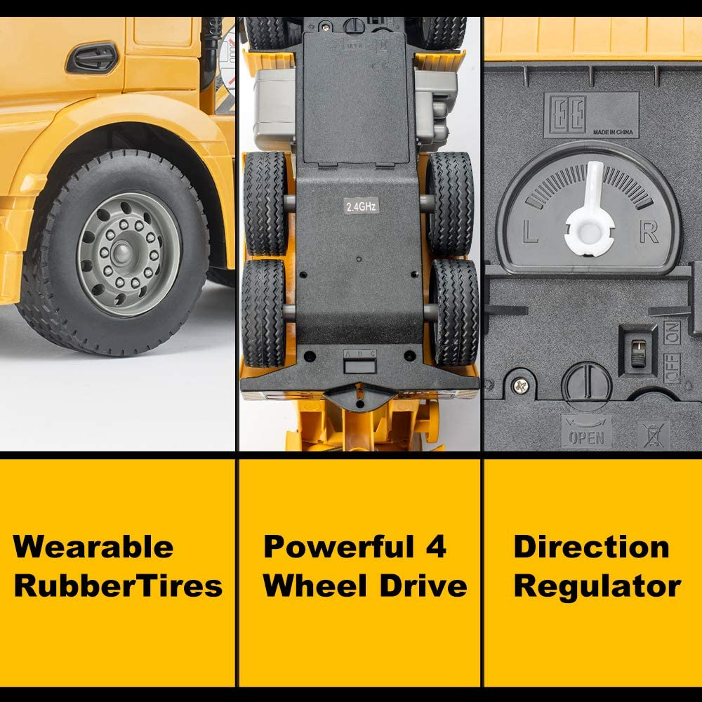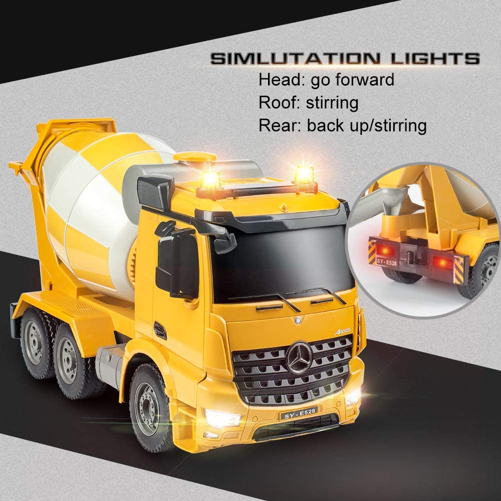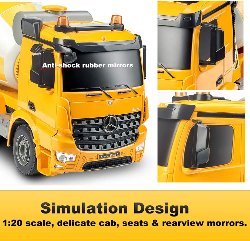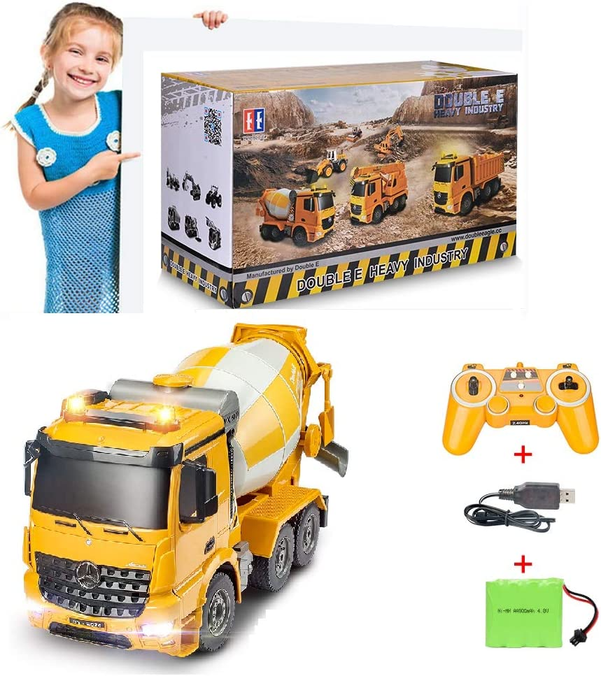 - 公式ライセンスのミキサートラック - 1/20スケール、本物のセメントミキサートラックのように見え、機能します。電動360°攪拌自動ダンプ、シミュレートされたサウンドとライト。他のDOUBLE Eのおもちゃとうまく連携し、子供たちに何時間も楽しんでいただけます。誕生日やクリスマスのギフトに最適です。