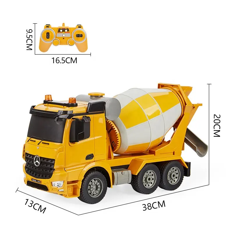 - 8 チャンネルのフル機能 - 電動ダンプインと撹拌、前進/後進、左/右旋回、作動音、ホーン/ミュート、ヘッドライト、ルーフライト。子供、特に未就学児が操作方法を学ぶのに役立つ、ボタン 1 つで自動デモンストレーションが行われます。