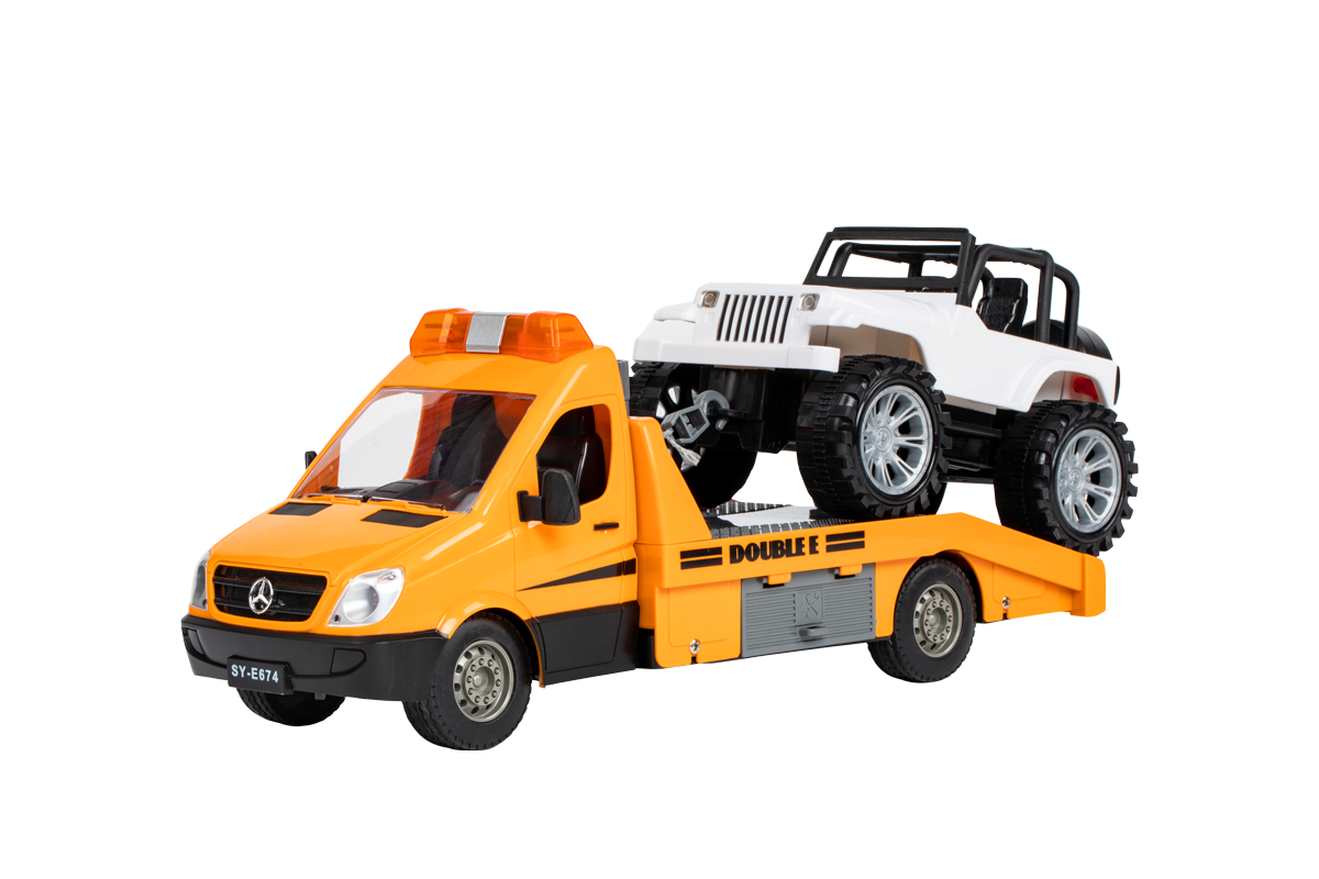 この素晴らしいリモコン式メルセデスベンツ スプリンター トランスポーター おもちゃモデルは、故障した車両を丁寧に修理し、修理のためにガレージに届けます。
