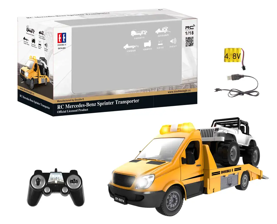 - Double E リモコン メルセデス ベンツ スプリンター トランスポーター (E674) モデルで究極の輸送手段を体験してください。リモコン トランスポーターは、作動するライトとミュートできるサウンドを備えた運転/ステアリング機能を備えています。