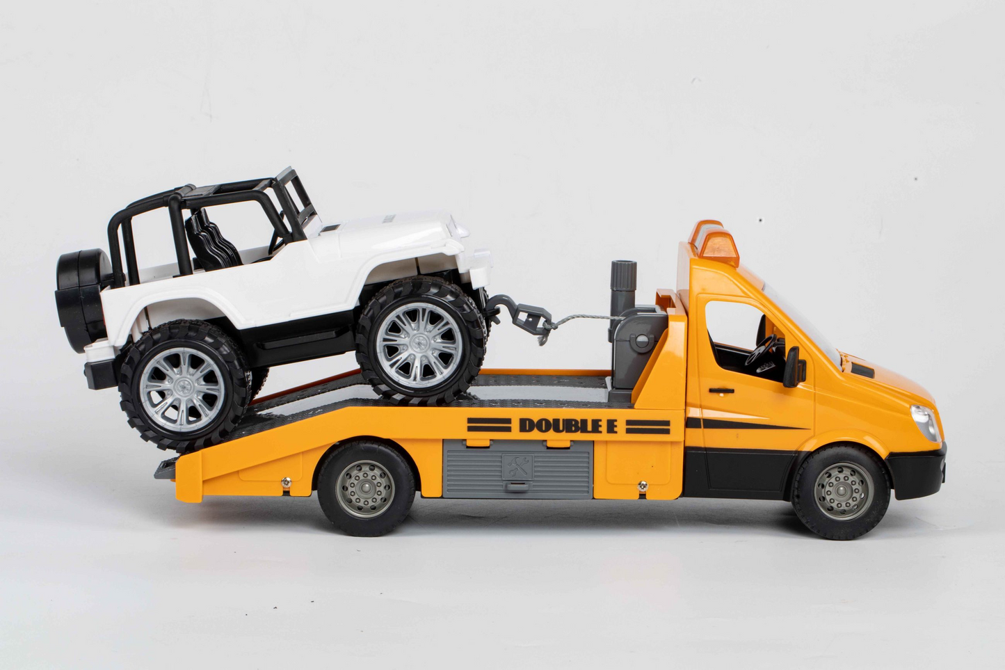 - さらに遊びの楽しさを高めるために、機能的なテールゲートと作動するケーブル ウインチが特に目玉です。これらの機能的な部品があれば、故障した車両をあらゆる道路や歩道から取り除くことができます。