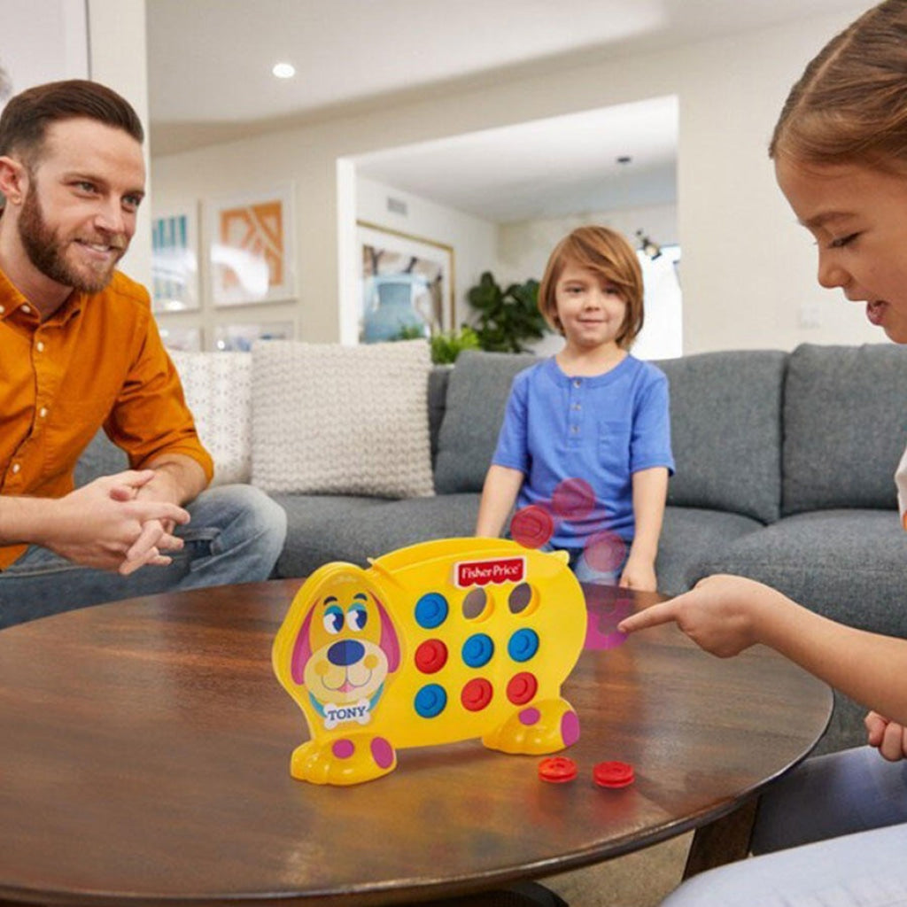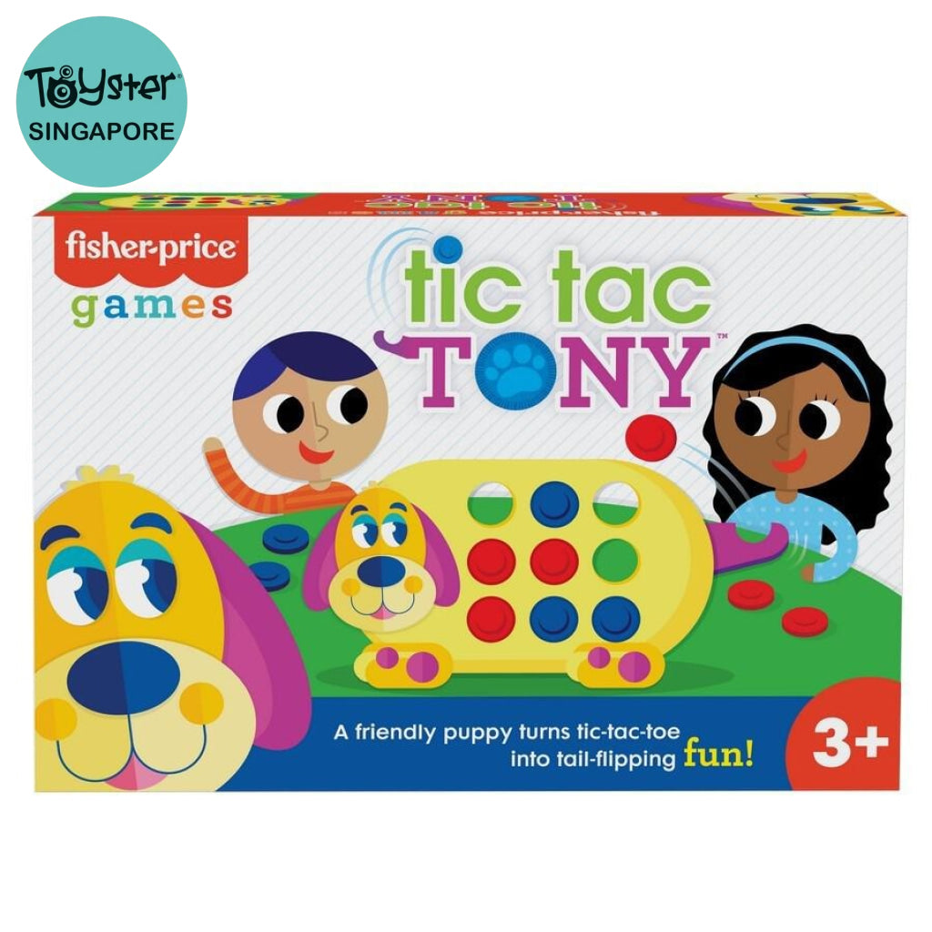 チックタック トニーは、フィッシャープライスの幼児向けゲームで、世界中で愛されているチックタックトーに、しっぽをひっくり返す愛らしい子犬が加わっています。子供たちはフレンドリーな子犬のトニーのしっぽを使ってディスクを並べ、背中の穴に投げ込みます。得点するには、ディスクを水平、垂直、または斜めに並べる必要があります。最初に 3 つを一列に並べた人が勝ちです。運とひっくり返すスキルによってディスクの配置と勝利の可能性が決まる点が、元のゲームとは異なります。3 歳以上の子供が簡単に遊べるように設計されており、2 人から 4 人で同時に遊ぶことができます。色と装飾は異なる場合があります。