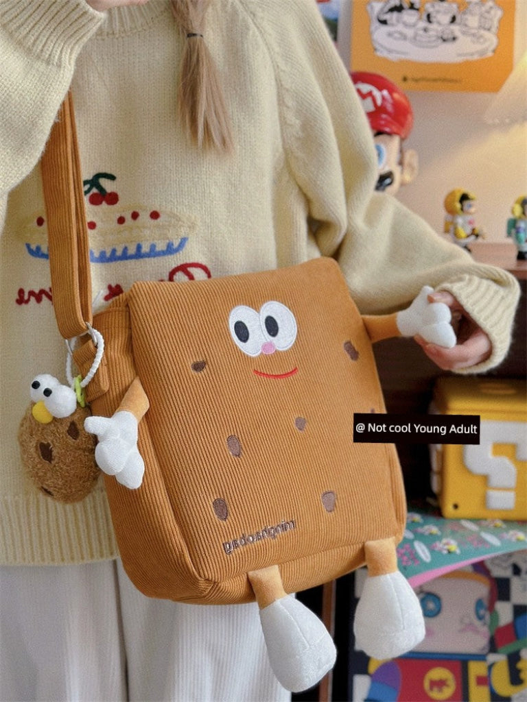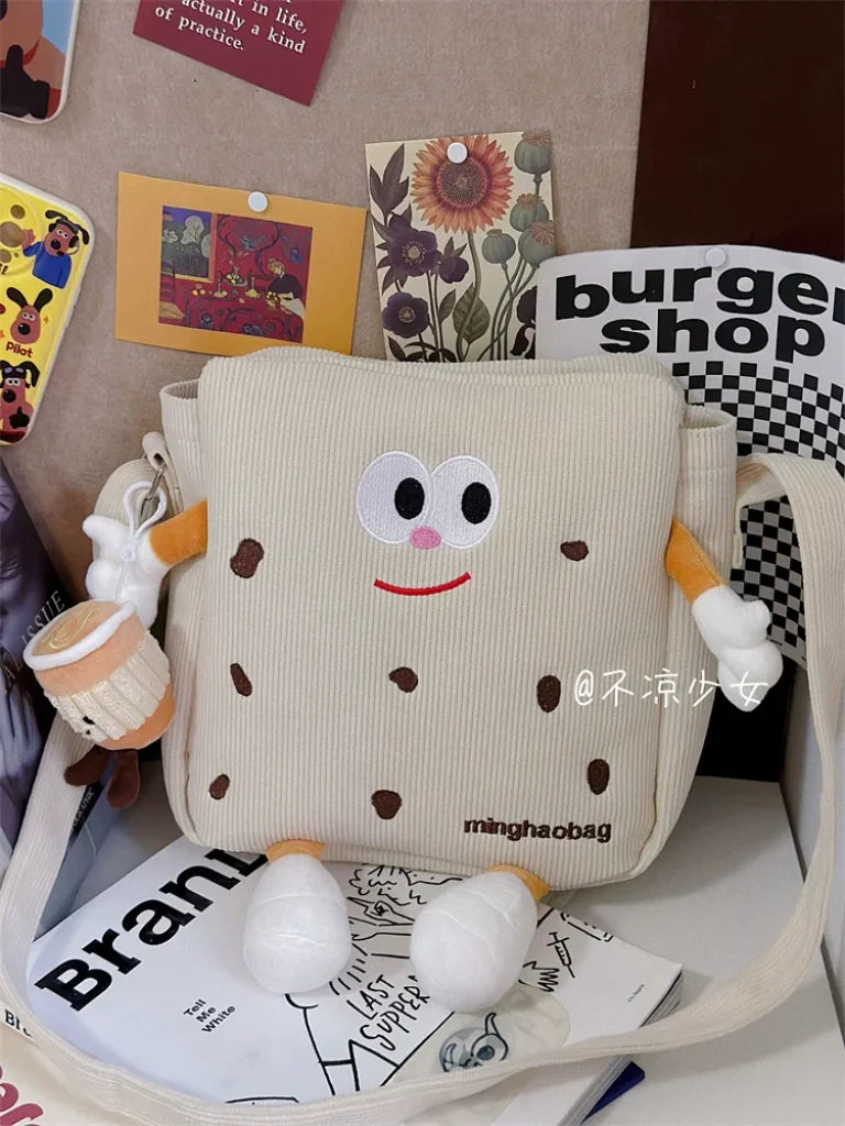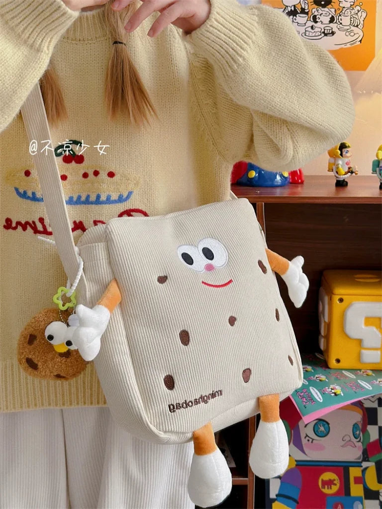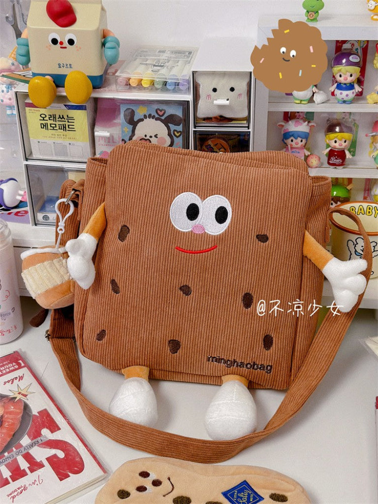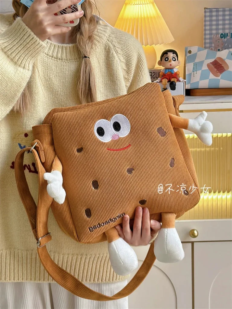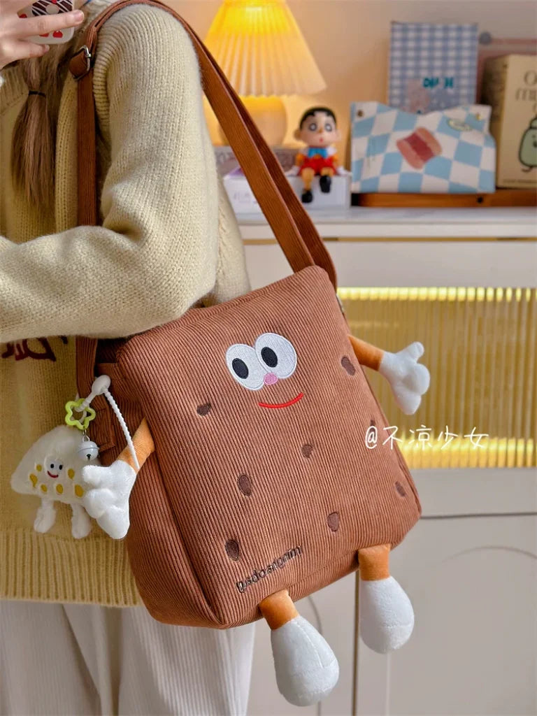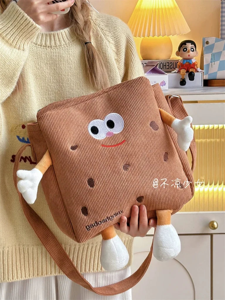 日本のスタイルの醜くてかわいいコーデュロイ漫画クラスメッセンジャーバッグ
