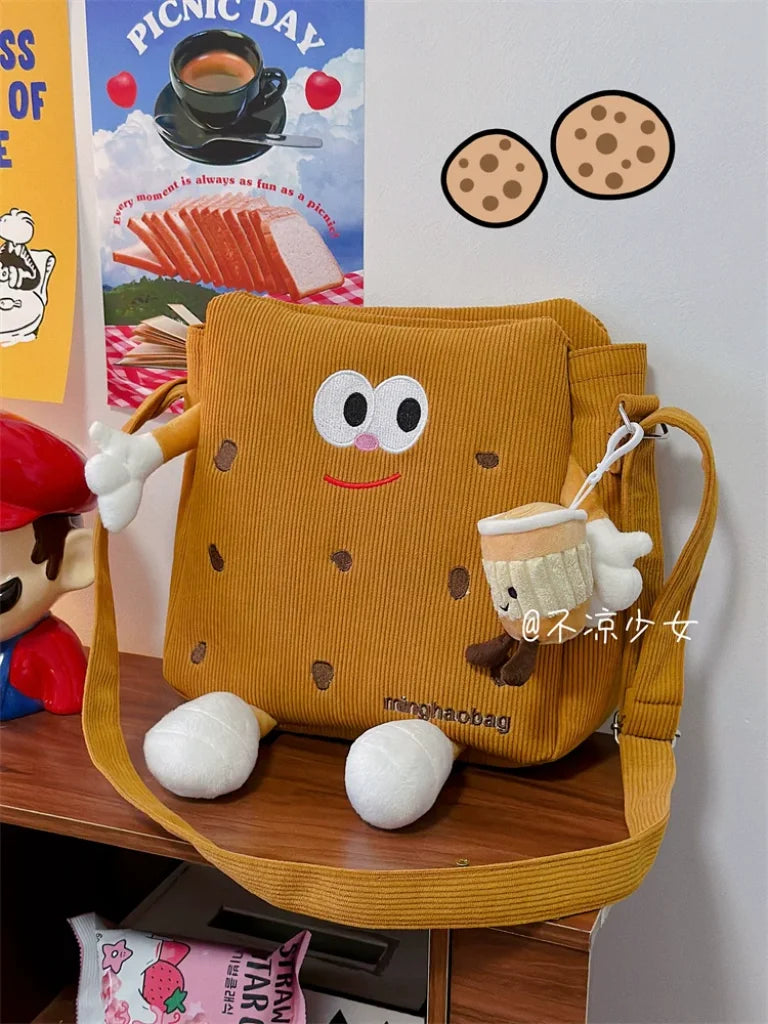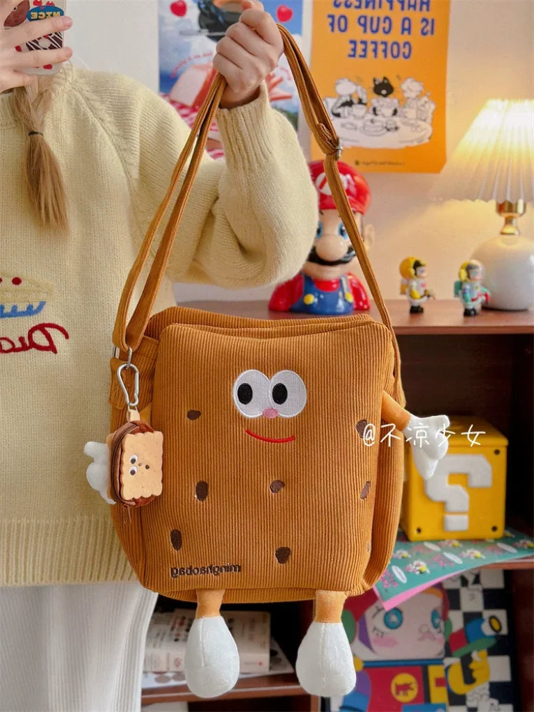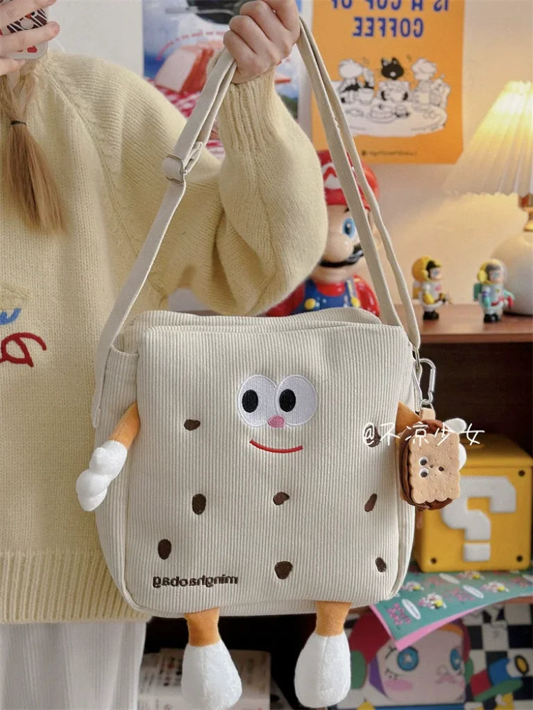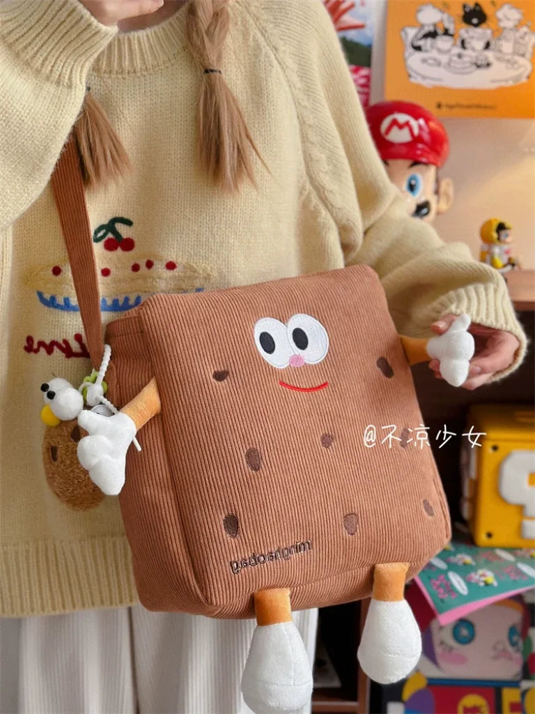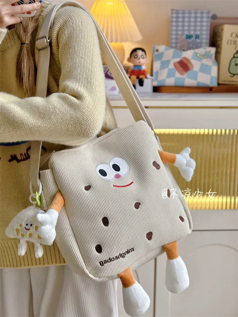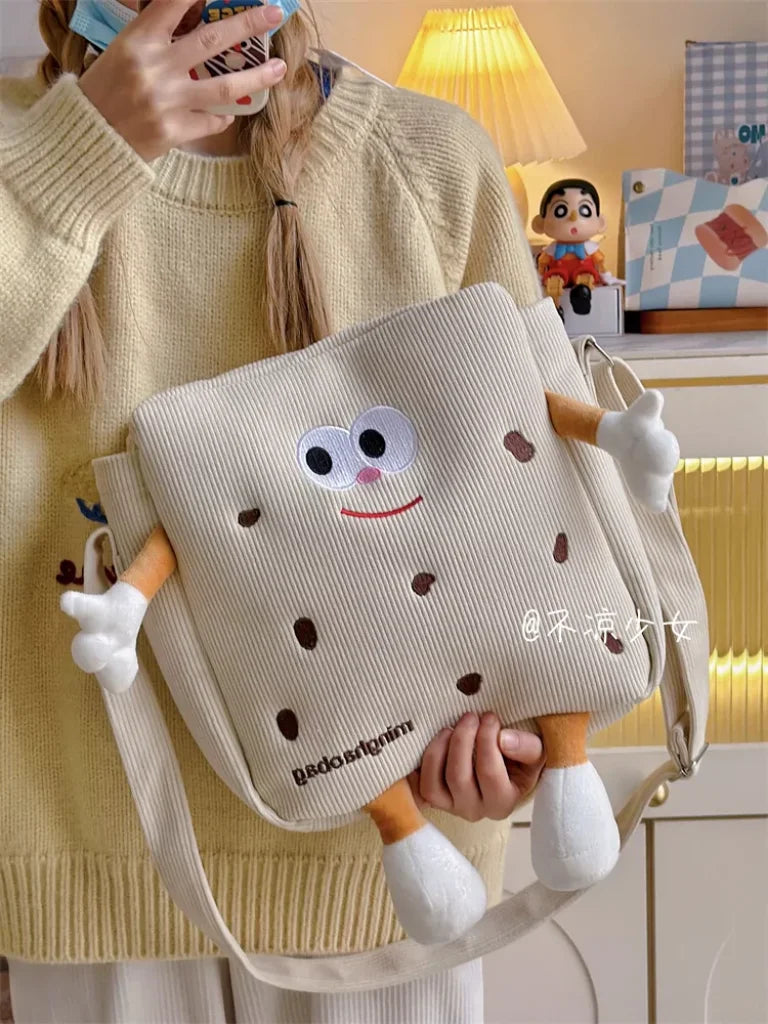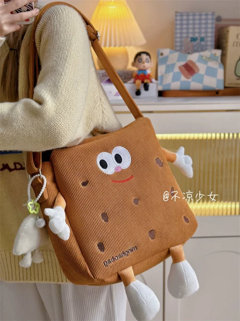 日本のスタイルの醜くてかわいいコーデュロイ漫画クラスメッセンジャーバッグ