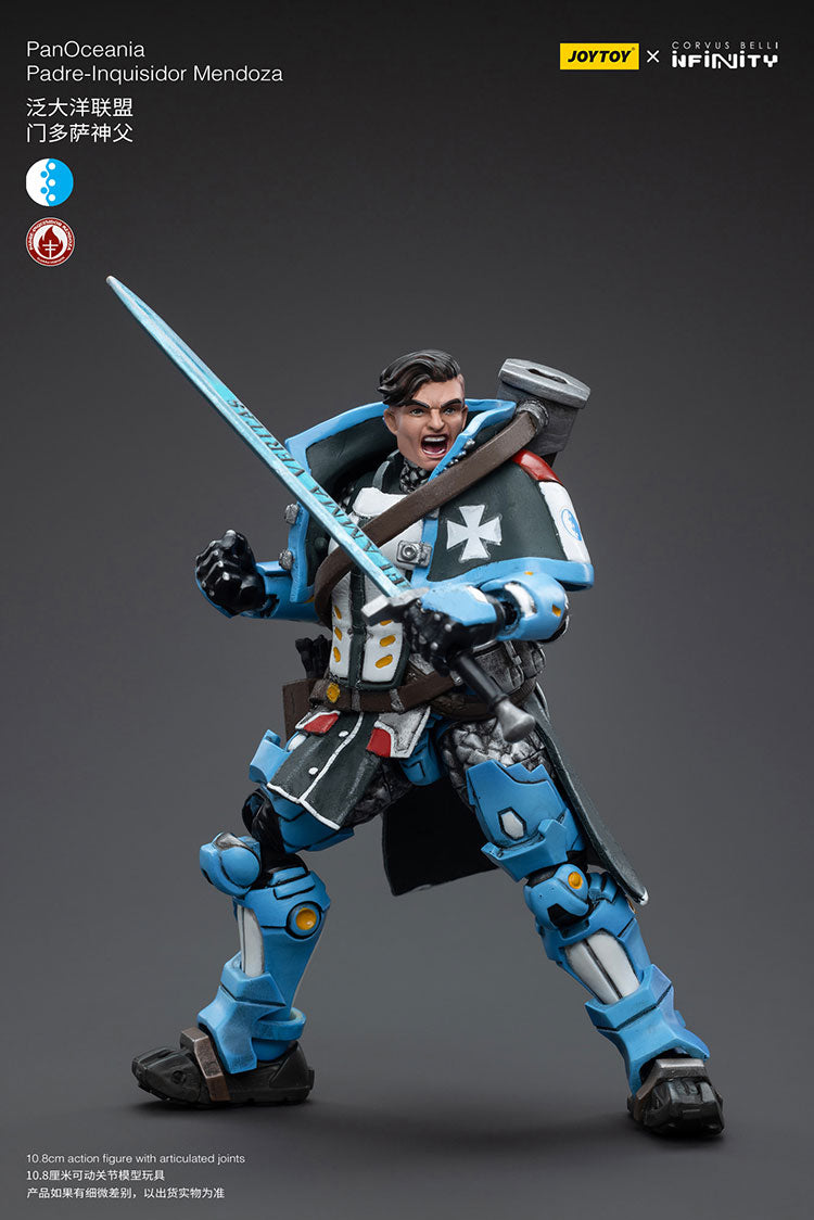 Joy Toy は、Corvus Belli が出版した卓上ウォーゲーム Infinity にインスピレーションを得た新しいフィギュア シリーズを発売します。この非常に精巧な 1/18 スケールのフィギュアは、高さが 4 インチ強で、交換可能なパーツと武器が多数装備されています。PanOceania Padre-Inquisior Mendoza を、Joy Toy が別売りしている他の Infinity フィギュアとともにコレクションに加え、戦いに向けて軍隊を編成しましょう。