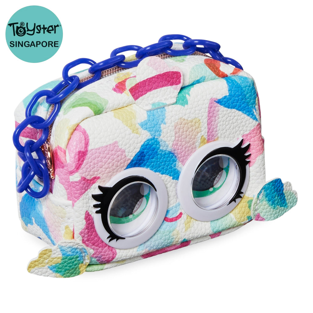 - メタリックな Purse Pets のバッジを引いて、超かわいいハンドバッグを開けると、遊び心のある生意気な目を回すのが目に入ります。ジッパーを閉めると、彼女はまた目を回して、あなたの素敵なスタイルをチェックします。
