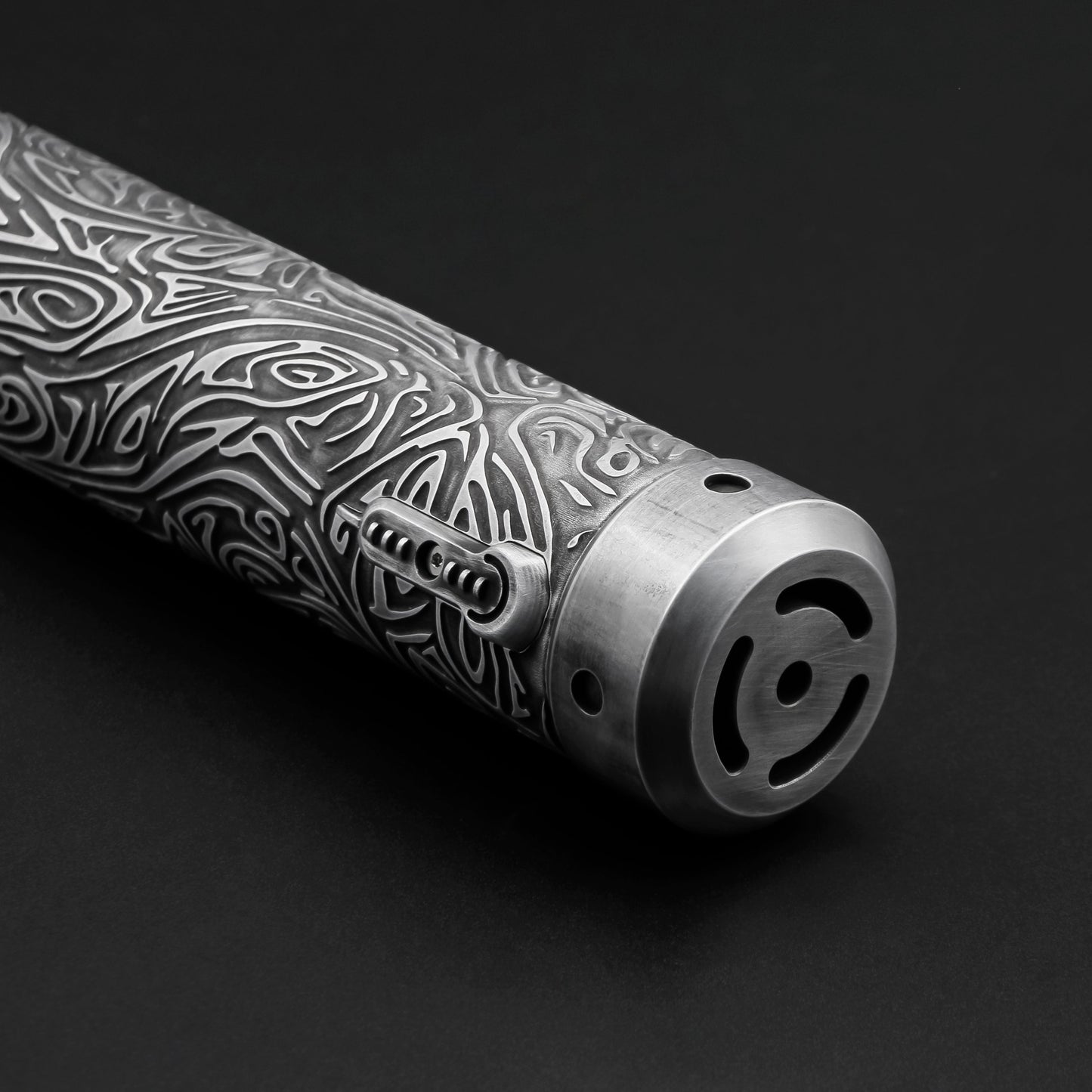 Satele Shan RGB/Neopixel ライトセーバーのパワーと精度を体験してください。グリップには精密でエレガントな彫刻模様が施され、シングルブレードまたはデュアルブレードから選択できます。中空のエミッターとユニークなデザインが、ジェダイにとって不可欠なこの武器に洗練された雰囲気を加えています。