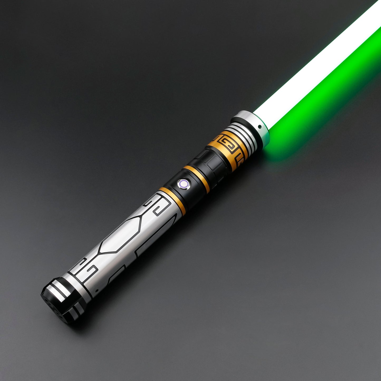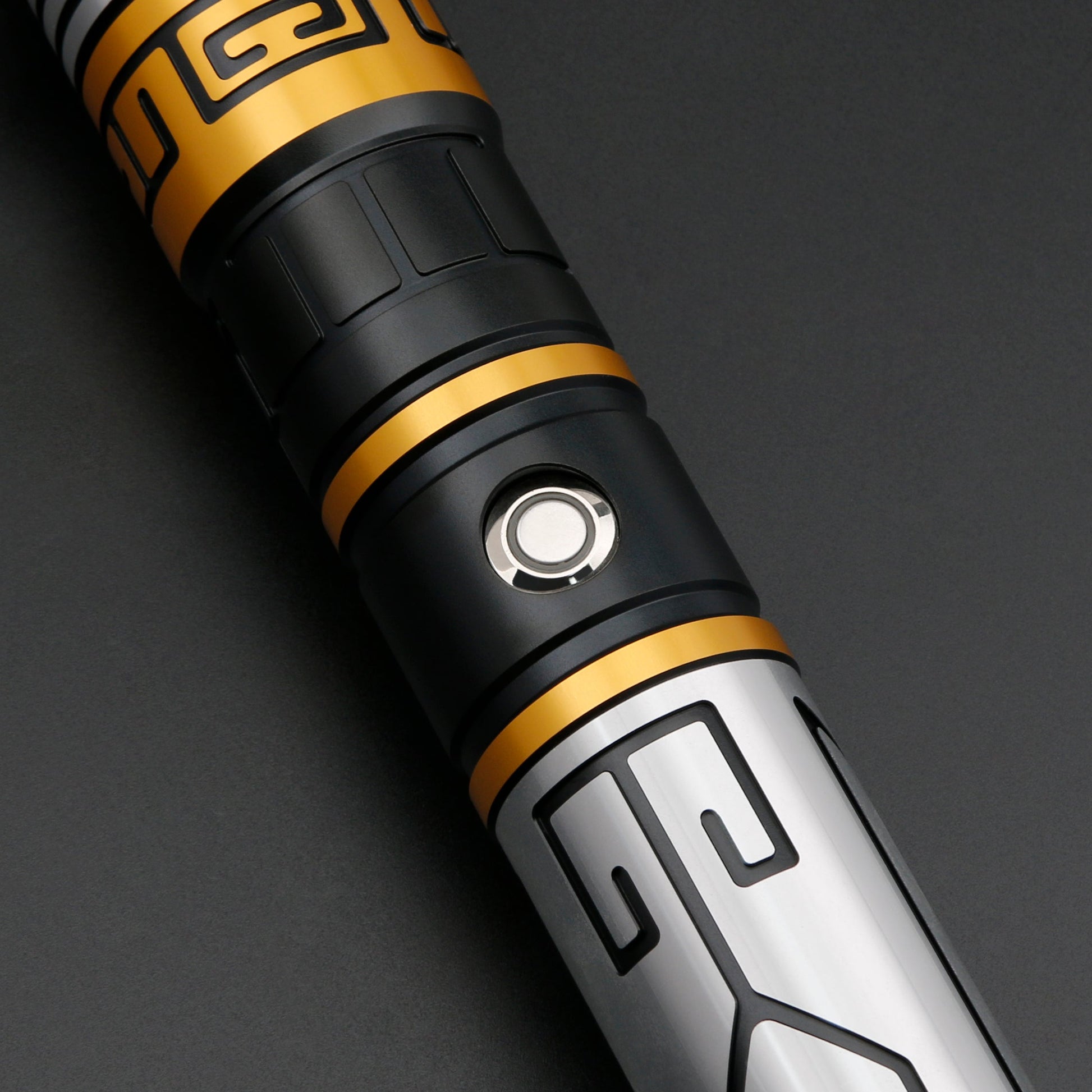 SV-Tucana RGB/Neopixel Saber で、Saber テクノロジーの頂点を体験してください。頑丈なハンドルとスムーズなスイングにより、戦闘中に確実な保持と正確な操作が可能になります。柄の本体の黄色、銀色、黒の融合色は、伝統的な守護者デザインを特徴としています。SV-Tucana であなたの内なる戦士を解き放ちましょう。