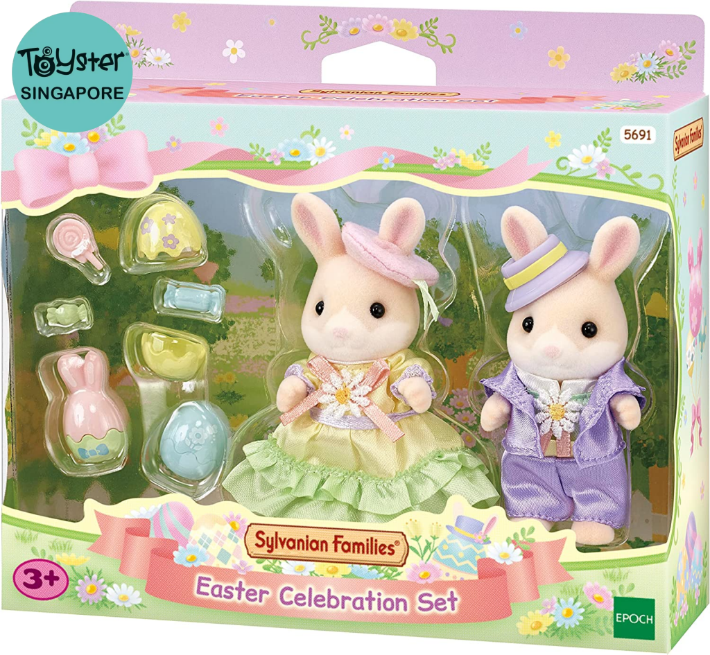 *新鮮でカラフルな春をテーマにした衣装を着たマーガレット ラビットの子供たちのイースター セレブレーション セット。マーガレット ラビットの女の子、マーガレット ラビットの男の子 (どちらも特別な衣装)、イースター エッグ、その他のアクセサリーが含まれています。