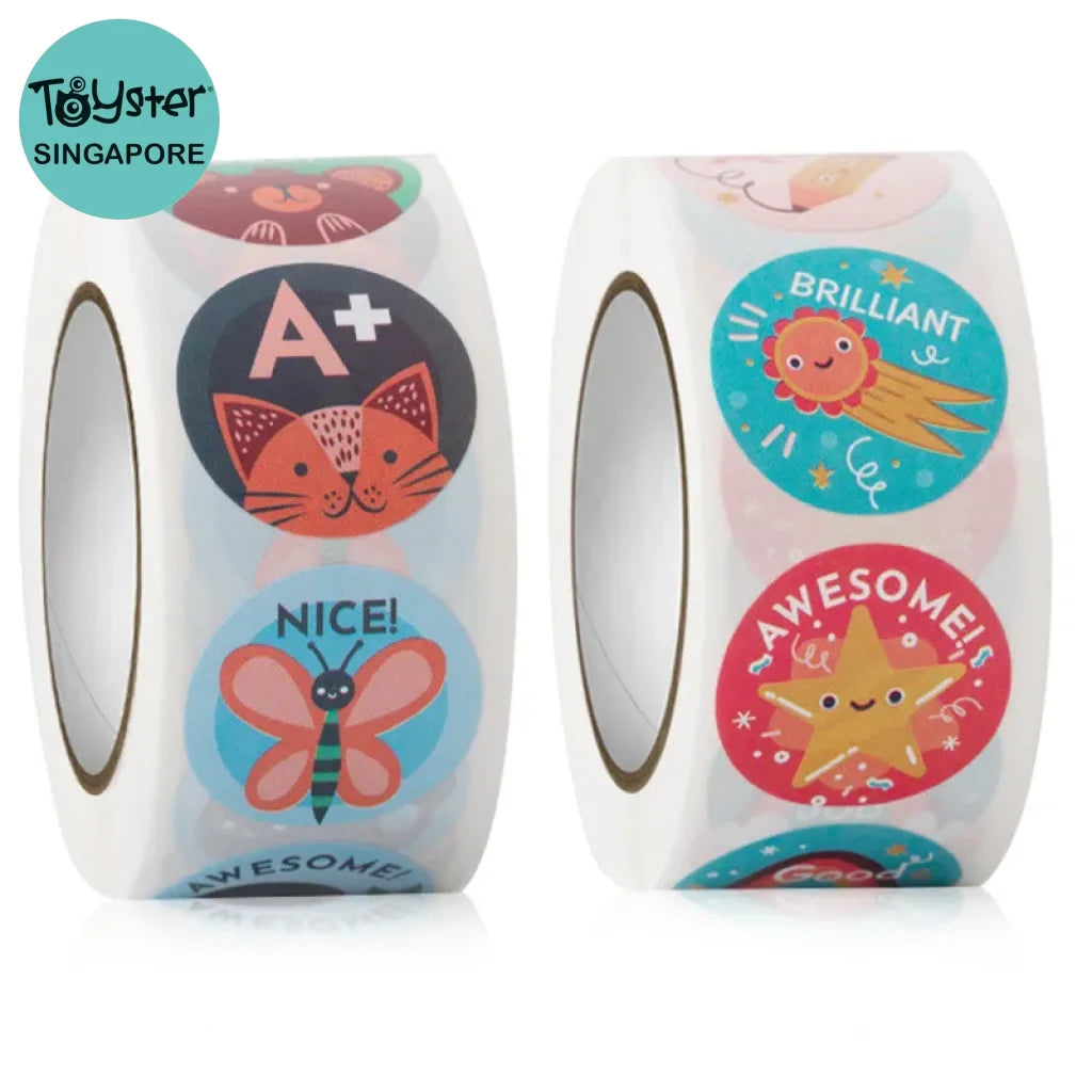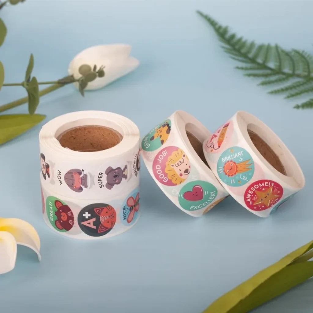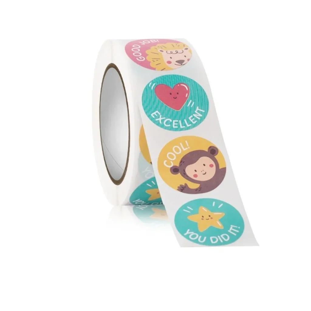 100-500 Pcs 1inch/2.5cm Animal Good Job Cool Stickers Roll