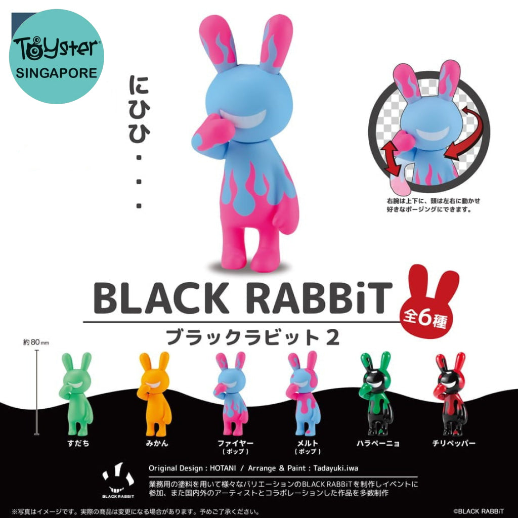 So-Ta's popular capsule toy series "BLACK RABBiT" is back in refreshing new colors! The matte monochromatic colors are inspired by delicious citrus fruits such as "Sudachi" and "Mikan;" the "Fire" and "Melt" colors combine vivid light blue and pink for a pop impression. Then "Jalapeno" and "Chili" provide a fiery finish, with shining gloss and crisp color! The figure's heads can rotate, too. These popular figures would be a wonderful addition to your collection -- there are six versions to collect and trade, randomly packed in boxes of six. Order yours today!