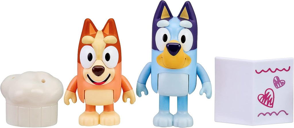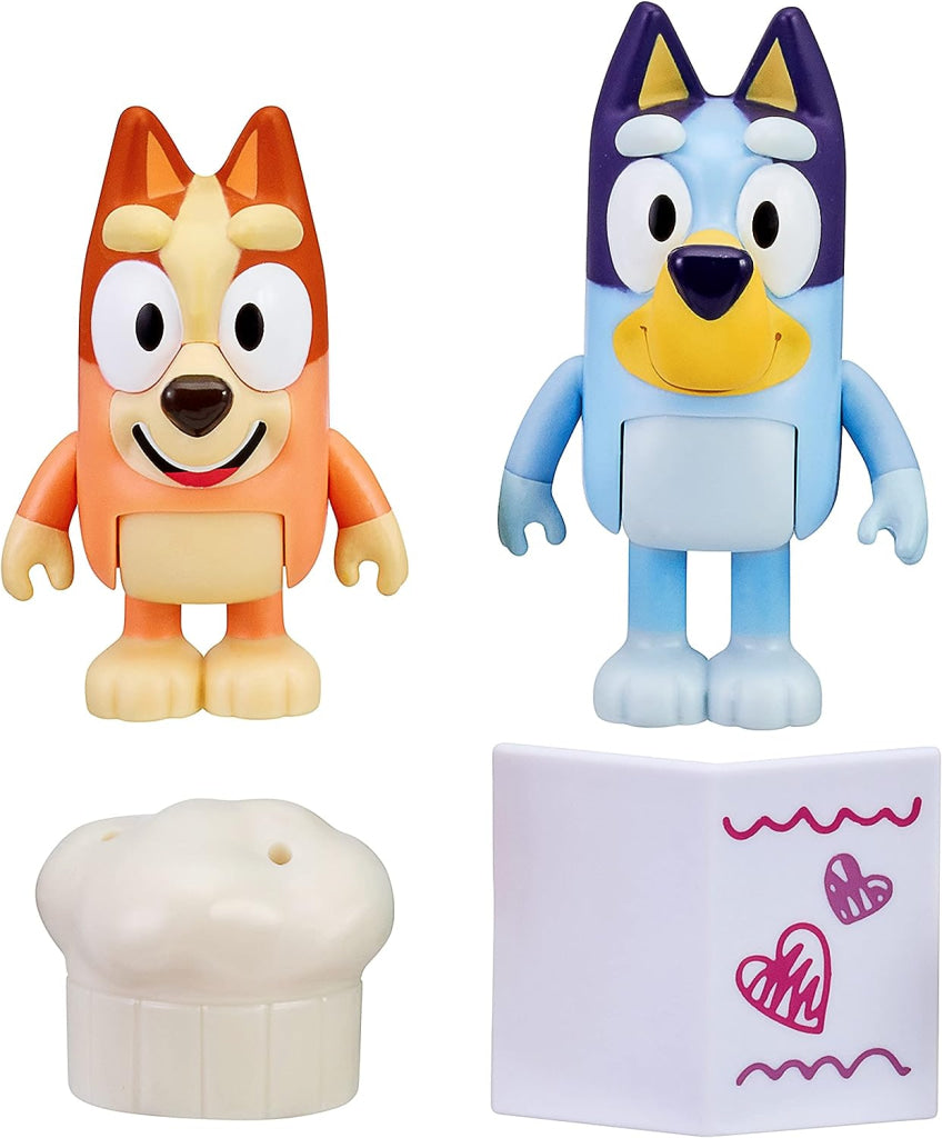 - Includes Bluey and Bingo figurines and a toy menu and a chef hat so Bingo can play head chef.