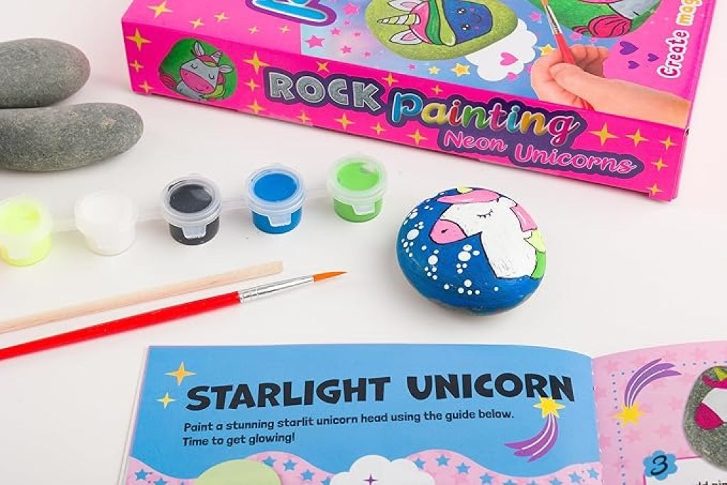 Creating and hiding rock art has become a hugely popular hobby, this kit is the perfect way to introduce little unicorn fans to the world of rock painting.