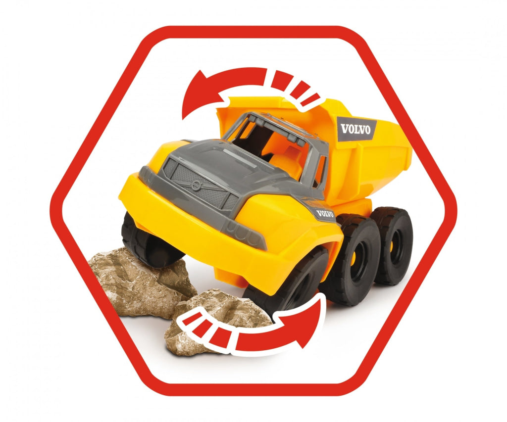 The Dickie Toys On-site Hauler was designed with one overriding idea in mind: How can we make our toy Volvo vehicles more realistic and functional? The result was this toy truck, which features rolling wheels and a moving hinged axis behind the driver’s cabin. Thanks to this axis, the vehicle can adapt to all types of surface, such as sand. Cargo can be loaded into the moving container and emptied onto the toy construction site. The open cabin houses a lovingly designed interior with detailed features. Designed for children aged 3 and above, the Dickie Toys On-site Hauler is guaranteed to keep your little one