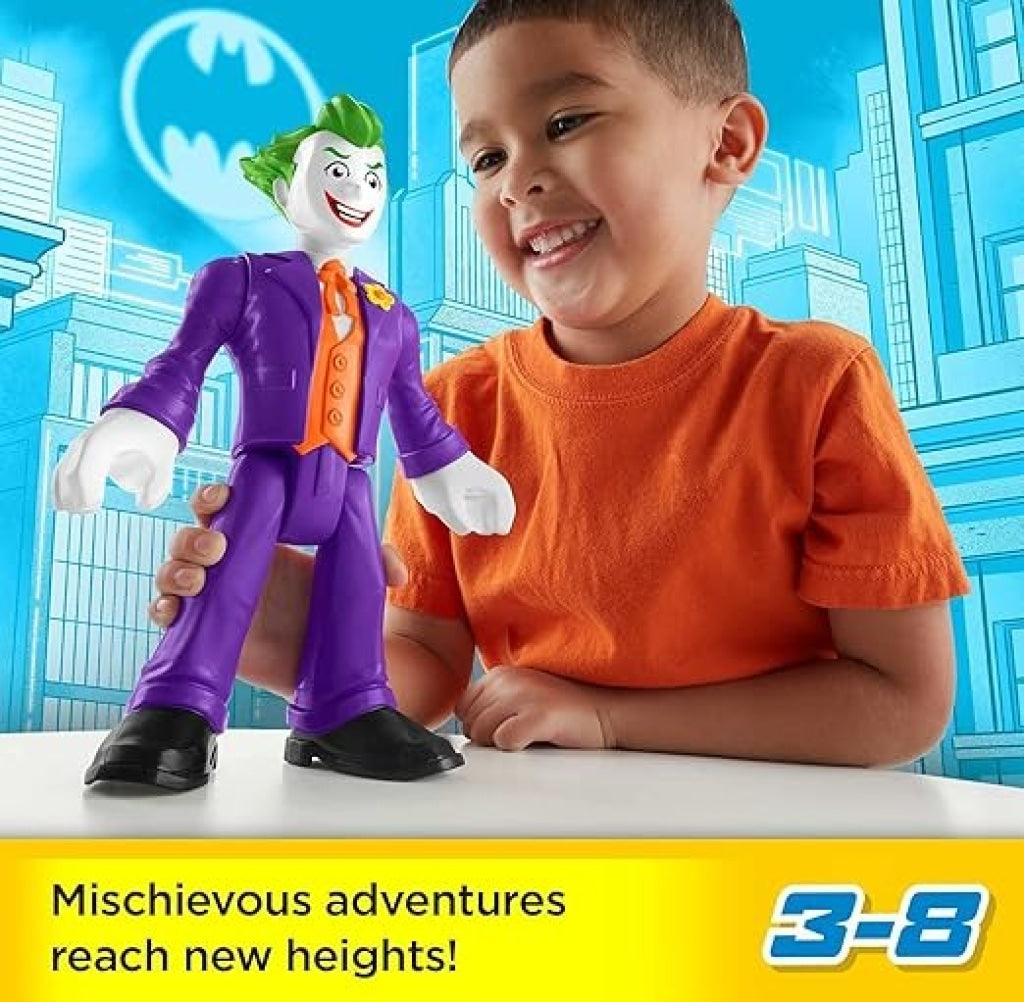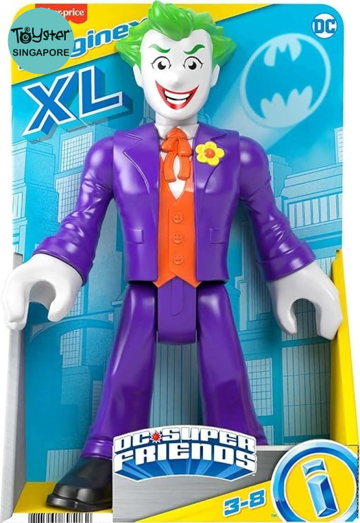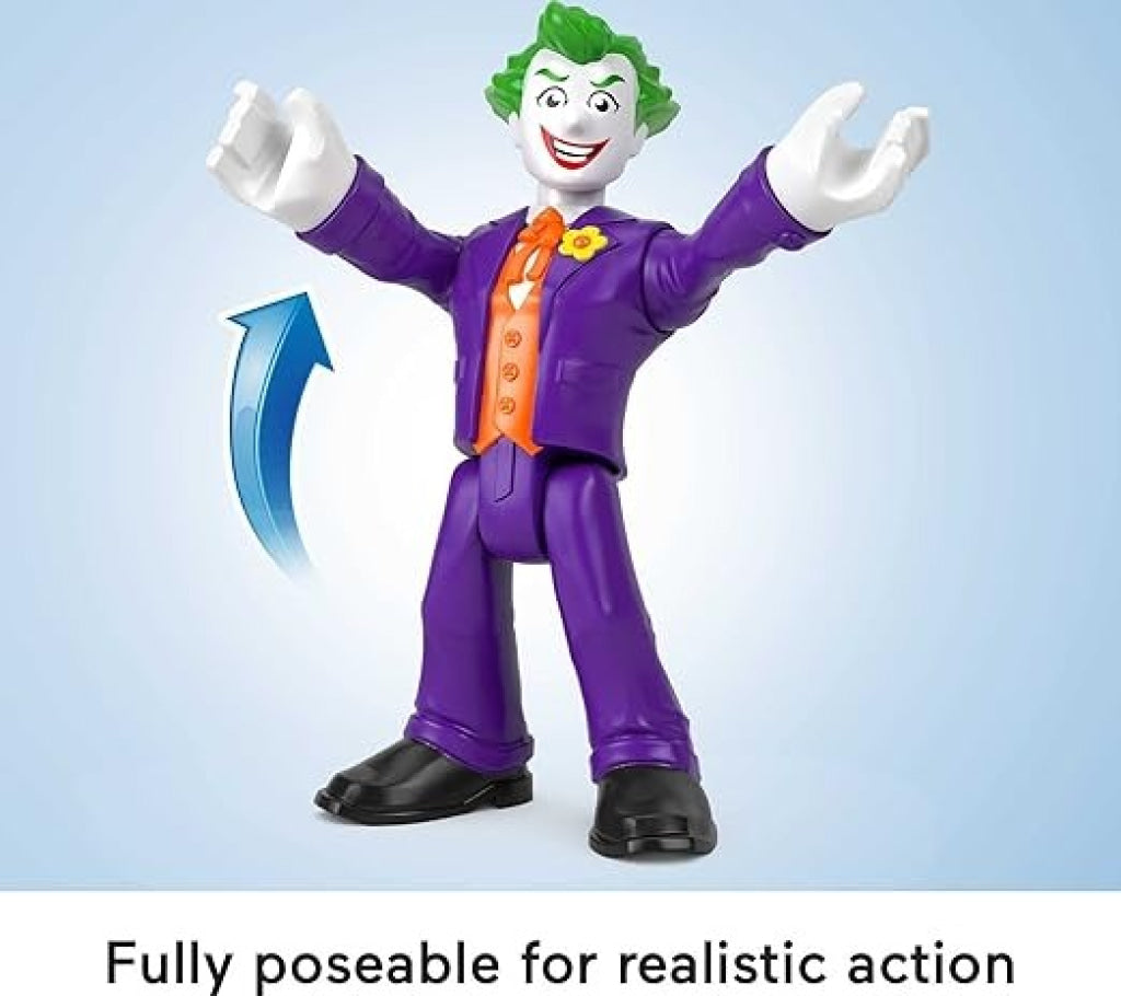 - The Joker™ in the character’s iconic purple and green styling in this super-sized Imaginext DC Super Friends figure
