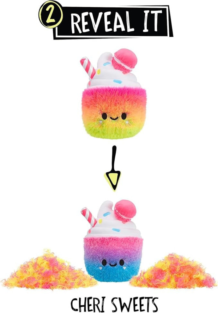 - SURPRISE CHARACTER REVEAL: Pull the outer layer of fluff from your Fluffie Stuffiez to reveal the character underneath. Who will you get? - Sunday or Carmela Treats?