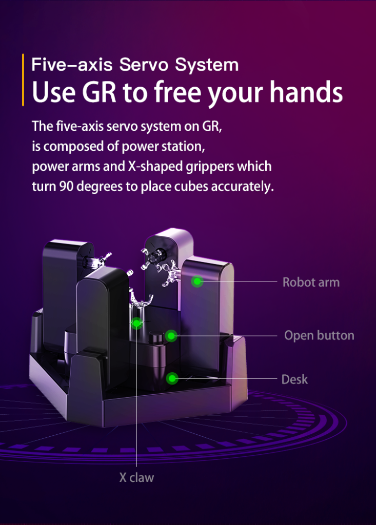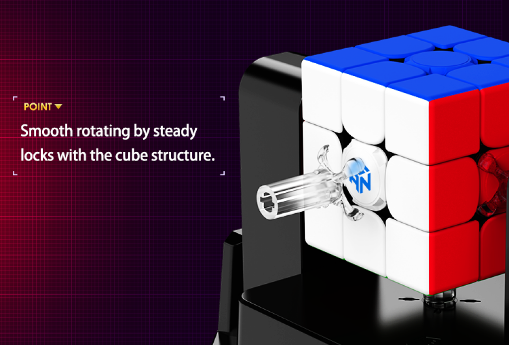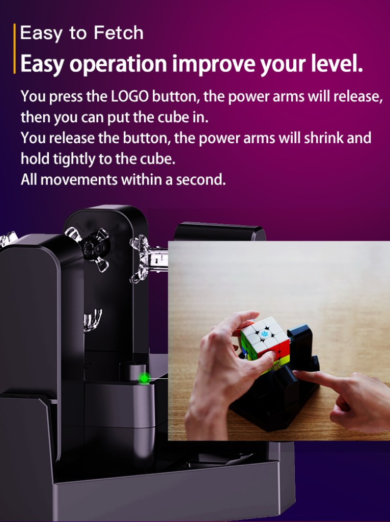 - DESIGN FOR CONVENIENCE: GAN Robot is foldable and portable with quakeproof, non-slip desk; It has 5 claws which grip cube firmly and turn precisely, and a button to fetch your cube in a simple way.