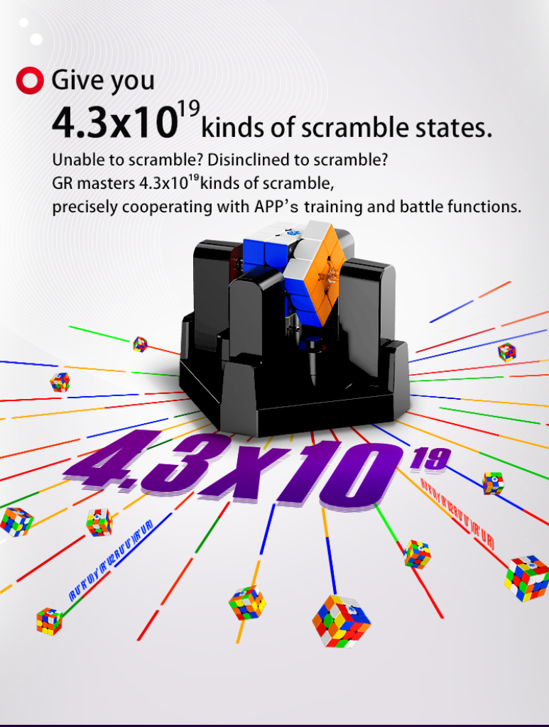 - FOCUS ON SOLVING, NOT SCRAMBLING: Scramble is so boring, why not give it to GAN Robot? It masters 43 quintillion kinds of permutations, seamlessly combined with APP’s training and battle mode.