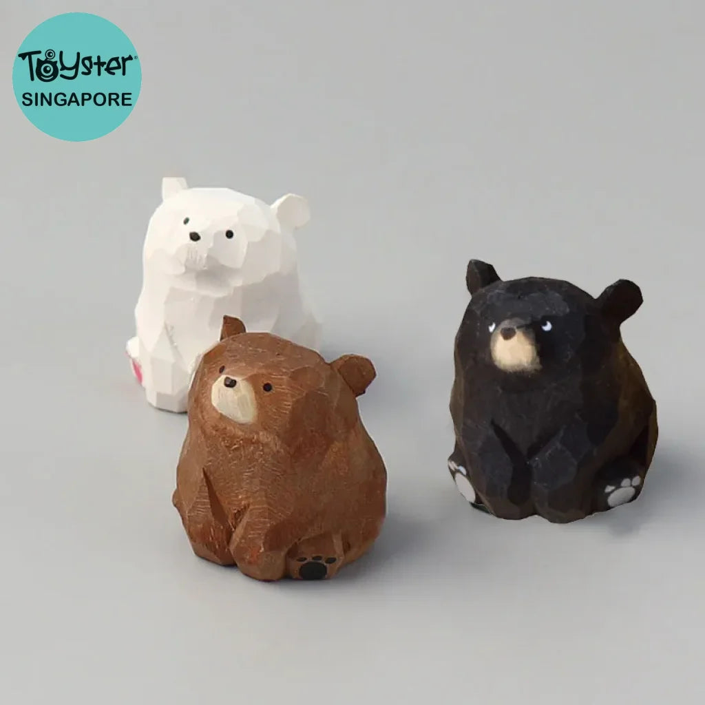 Hand Carved Miniature Solid Wood Bear Figurines