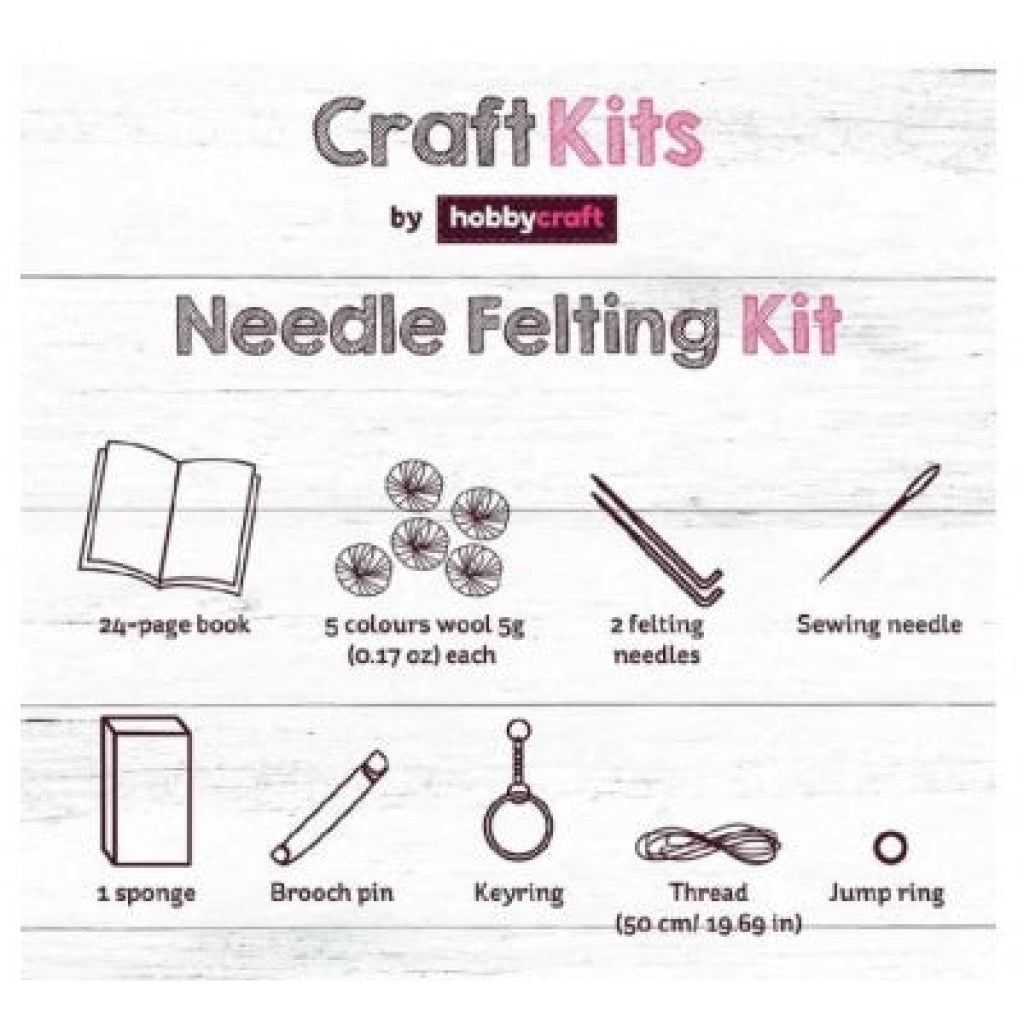 - This kit includes everything you'll need to create your projects including: 2 x felting needles, 1 x 24-page instructional book, 5 x bags of wool, 1 x sponge, 1 x brooch pin, 1 x keyring, sewing thread and 1 x sewing needle.