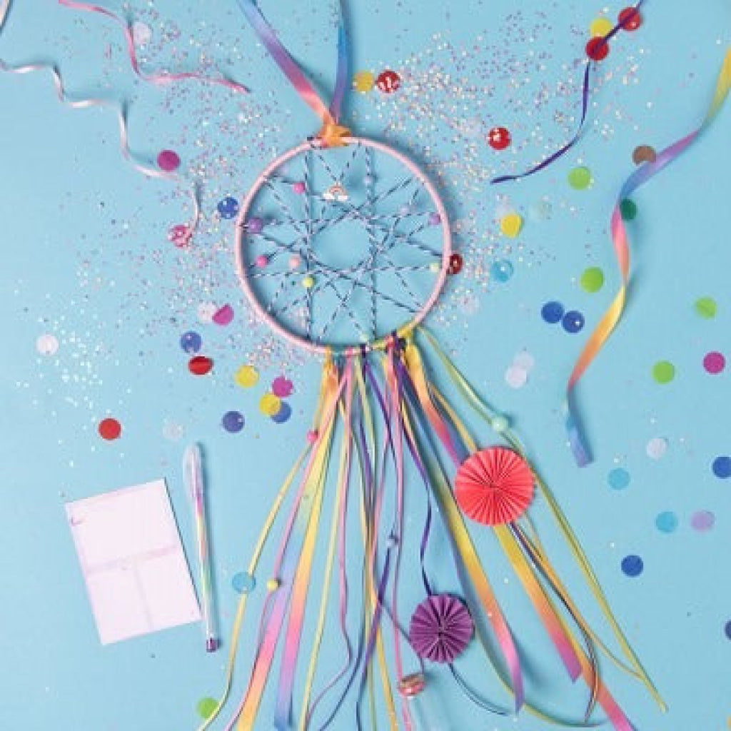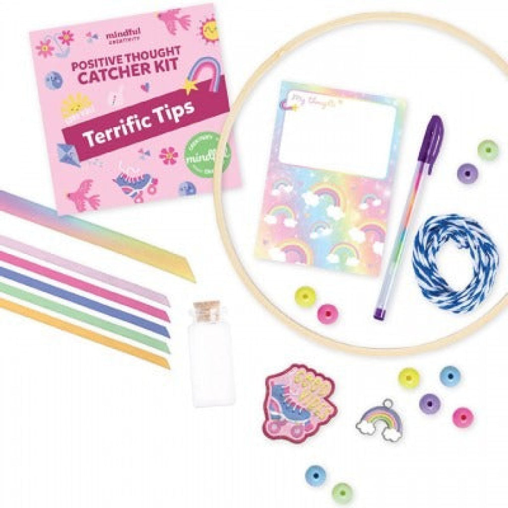 Bring good vibes every day with this super-fun Positive Thought Catcher! This kit contains everything kids need to create a bright and beautiful positive thought catcher that encourages reflection, gratitude and positive thinking! Complete with all you need to make an amazing rainbow good-thought catcher,complete with rainbow-maker disc and lots of choice in personalisation (with ribbons and beads which can be chosen and arranged in different ways), a message bottle, rainbow pen and notepad (with marked areas for bottle-sized notes), so that kids will be beaming with creative positivity!