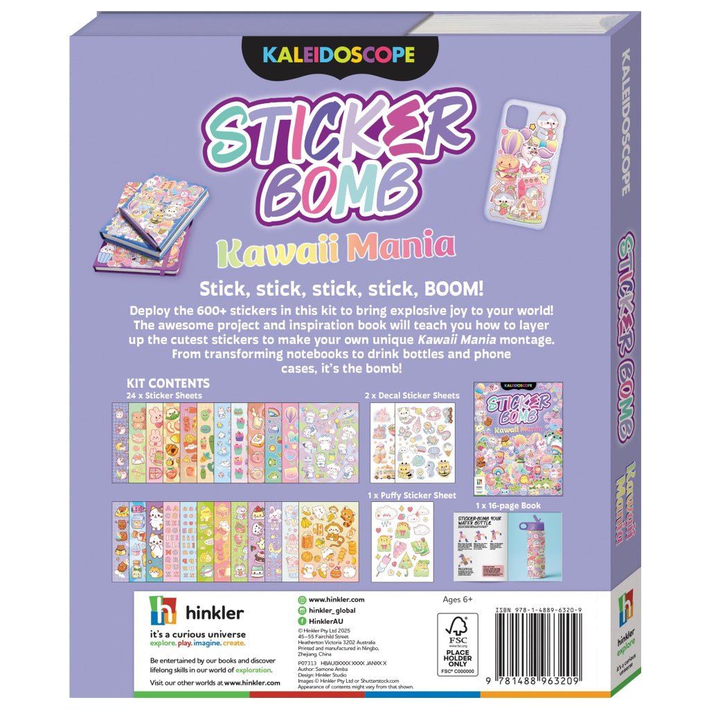 Dive into the cutest sticker world with our Kaleidoscope Sticker Bomb Kawaii Mania! Bursting with adorable stickers, this kit includes a 16-page book with instructions + heaps of cool stickers including feature stickers, decal stickers and puffy stickers, plus there’s an additional 24 sticker sheets! From adorable animals to sweet treats, let your imagination run wild as you create magic on notebooks, laptops, or anywhere that needs a sprinkle of joy! Let the sticker party begin!