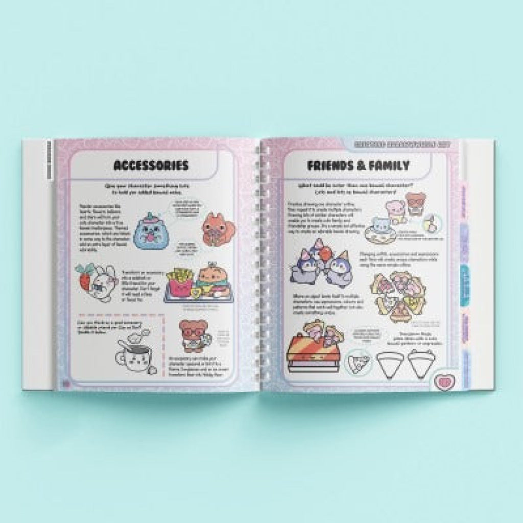 This epic binder is packed full of kawaii drawing lessons for all experience levels. Each of the 6 sections is a masterclass in a different topic! From the basics of all kawaii-style drawing to creating whole integrated kawaii scenes, and a whole lot of popular themes, like animals, food and mythological creatures!