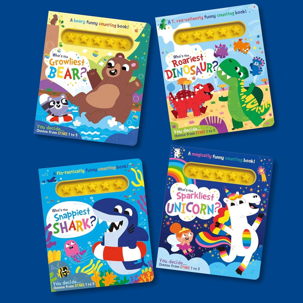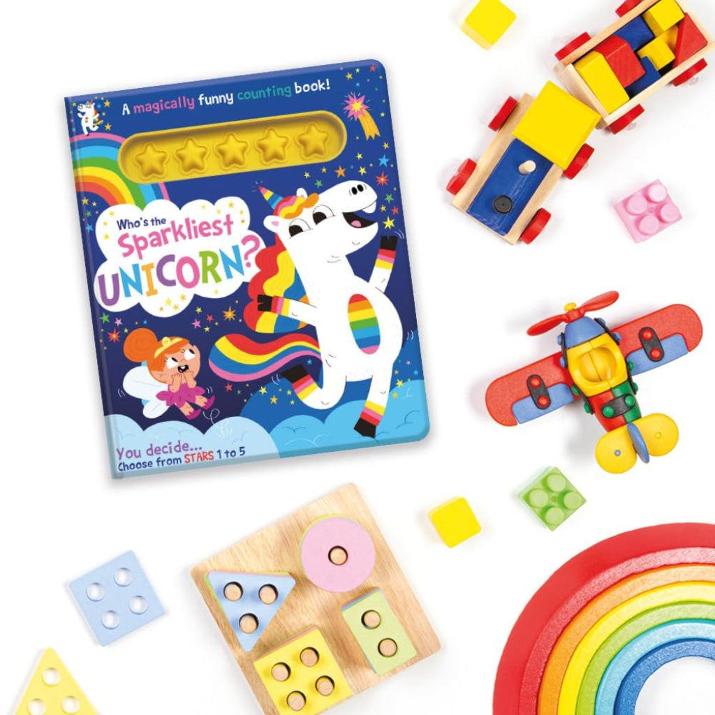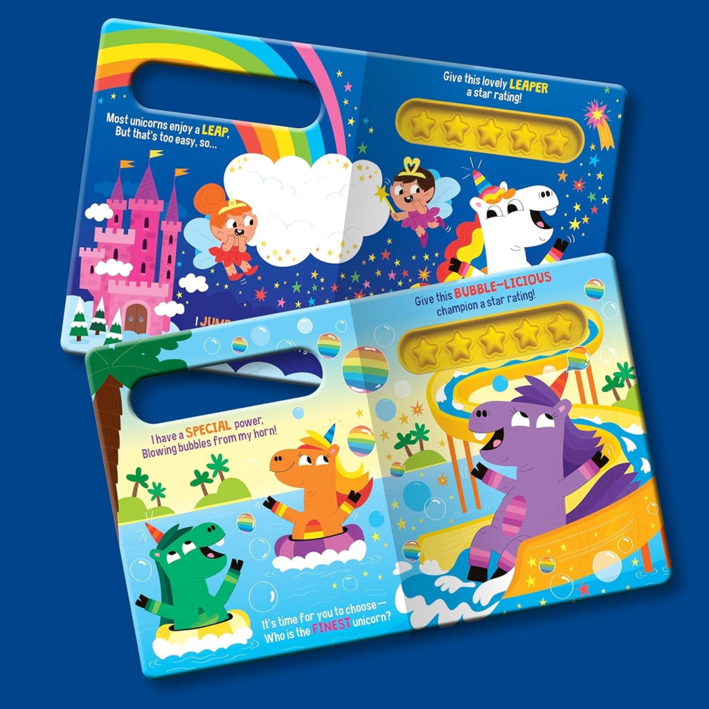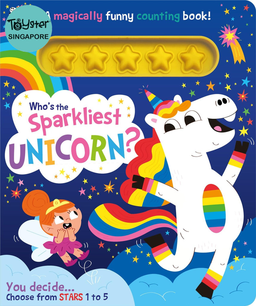 Who's the sparkliest unicorn of them all? YOU decide! Push and pop the stars and count 1-5 to choose who is the greatest in this magical funny counting book!