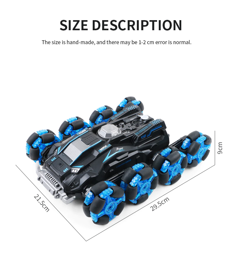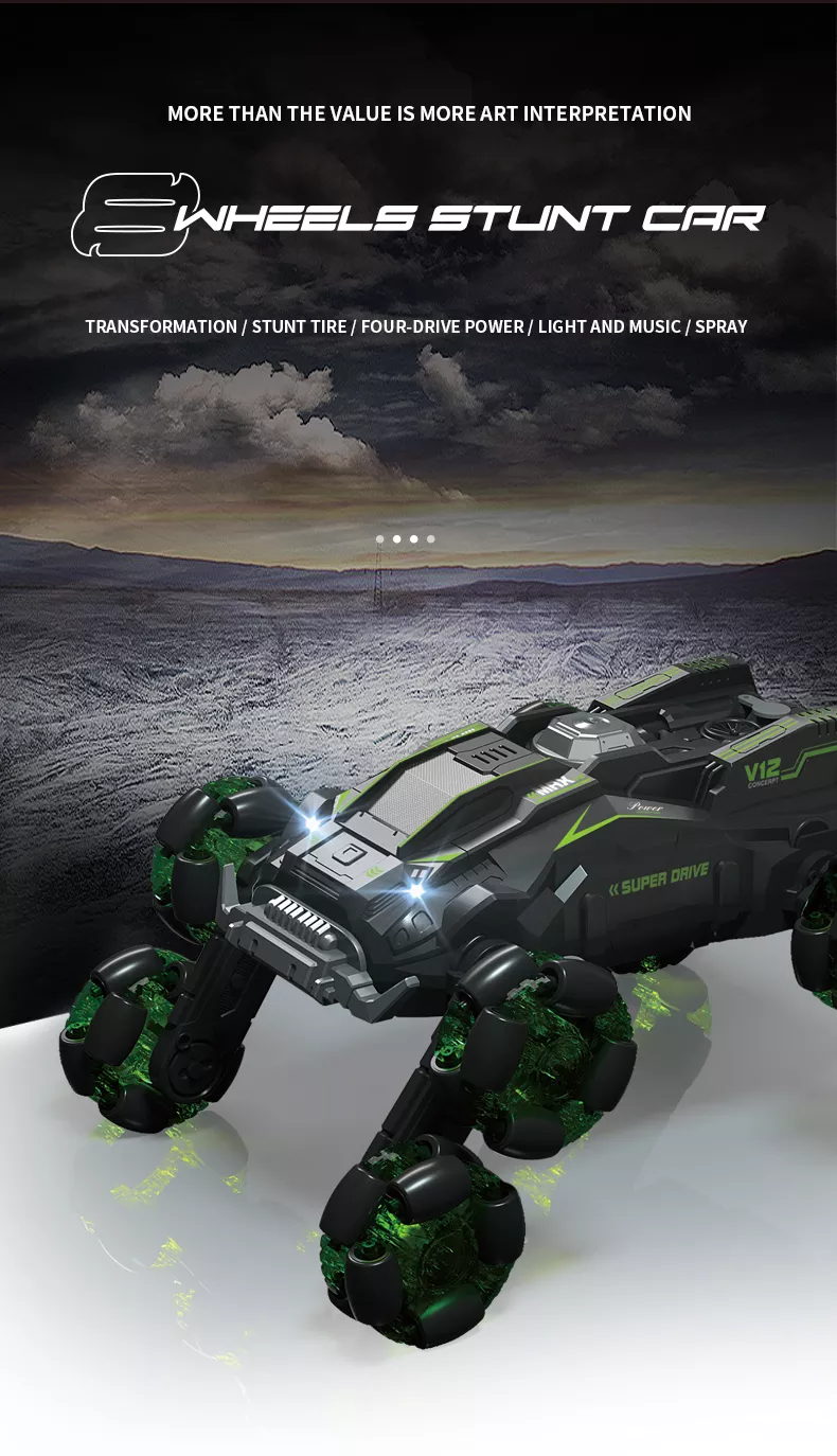Transformation, Stunt Car, Four-Drive Power, Light and music and Spray