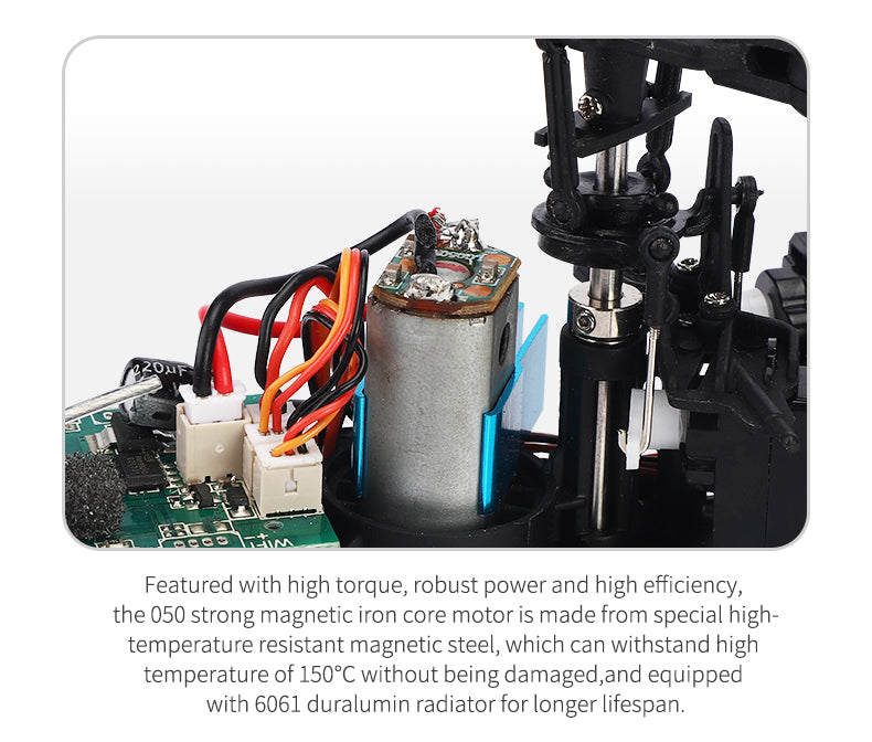 Furthermore, JJRC M05 makes use of a 050 strong magnetic core motor with sufficient power and large torque. Besides, its special high-temperature resistant magnetic steel has the ability to bear 150 degrees high temperature without any destruction.