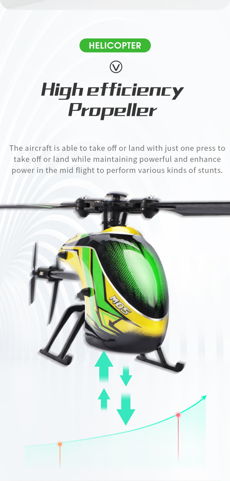 Also, it uses ABS+PC composite material for the blades that has durability, no deformation, impact resistance, good toughness, and high strength. In addition, it implements aileronless design, an electronic stabilization system, more stable flight, more accurate hand feeling, optimized traditional balance bar structure to decrease the profitability of damage.