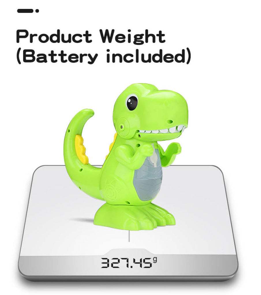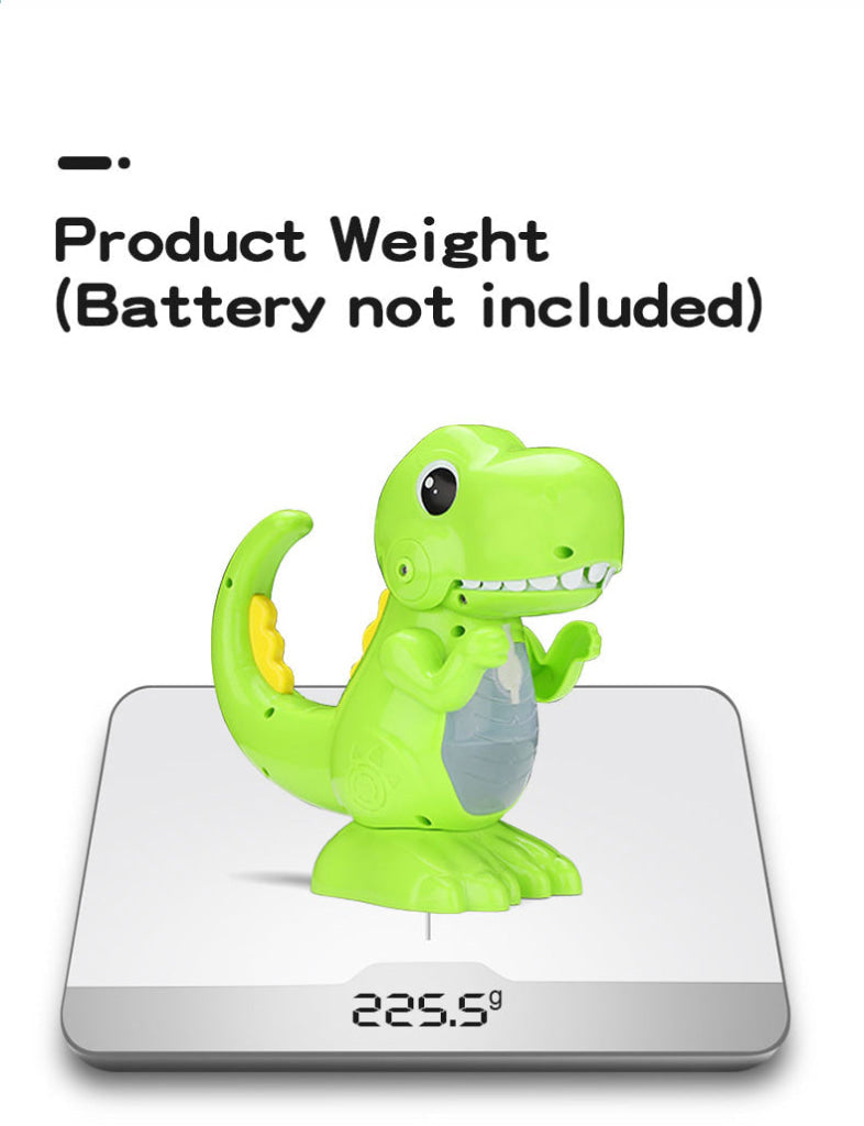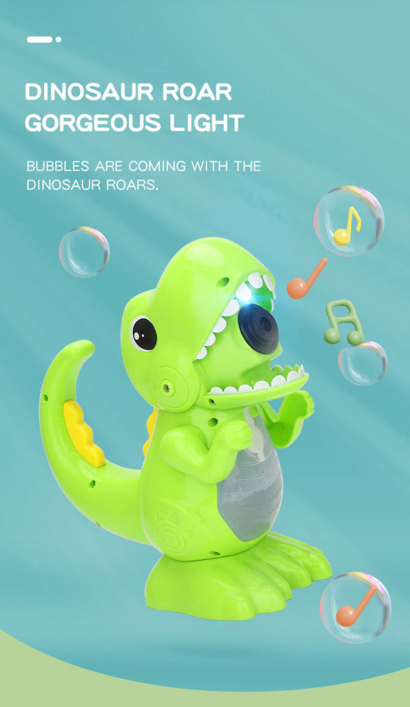 Three Steps,Let Bubbles Blow Out:Install 3 AA batteries(not included),inject the bubble liquid, press the trigger, t can blow countless bubbles from the dinosaur's mouth.