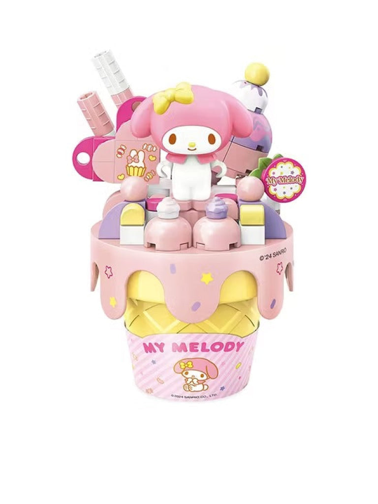 The popular Sanrio character building block series.Cute decoration with ice cream. The pattern is silk-screened instead of stickers, so it is not easy to get corners and discoloration. It takes about 20-30 minutes to assemble.
