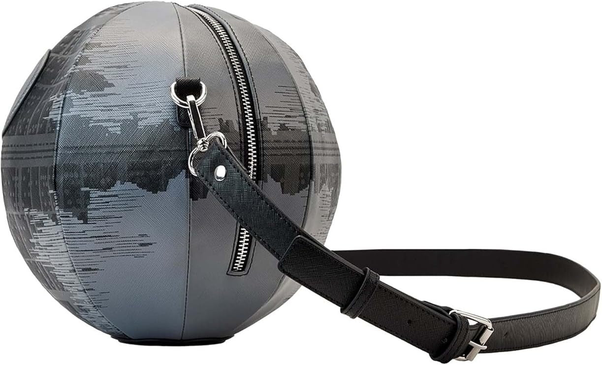 That’s no moon, it’s the Loungefly Star Wars: Return Of The Jedi Death Star Figural Crossbody Bag! This 40th Anniversary edition design captures an iconic battleship from the third film in the Skywalker saga. This 3D, spherical bag mimics the design of the fearsome planet destroyer. This galactic accessory makes a stellar addition to any outfit and is sure to elevate any Star Wars collection.