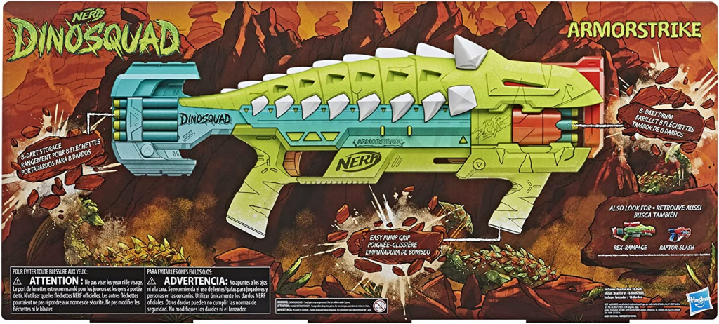 - NERF DINOSQUAD ARMORSTRIKE BLASTER: Charge into action and adventure with this dart blaster that features awesome dinosaur details, capturing the look of an Anklyosaurus dinosaur