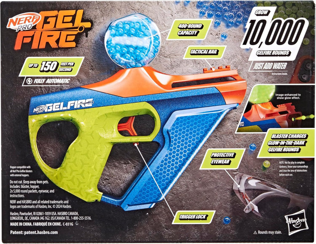- BURST INTO BATTLE WITH THE NERF PRO GELFIRE NIGHTFALL UPROAR BLASTER: This glow in the dark blaster fires hydrated rounds that burst on impact and delivers high-performance blasting to ignite your competitive advantage. Ages 14 and up