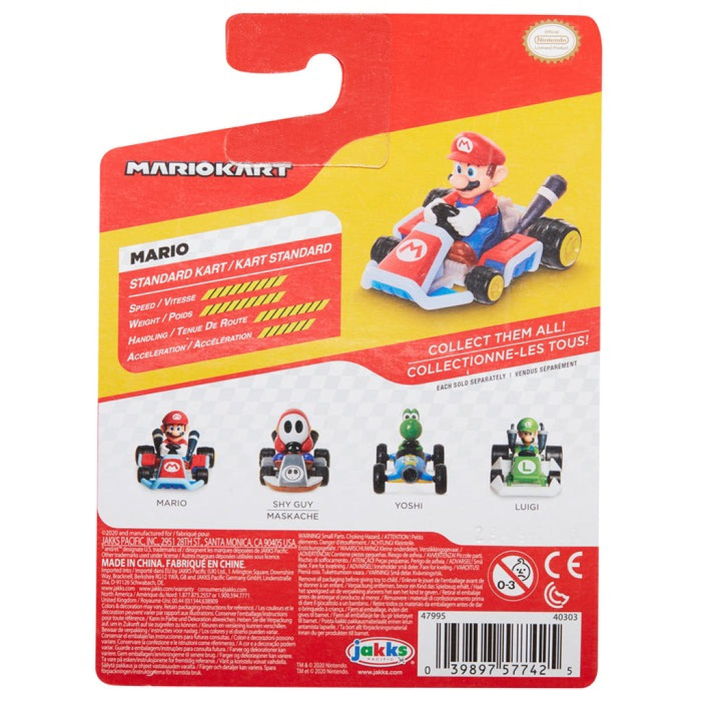 The Nintendo Mario Kart Racers allow you to recreate your own Mario Kart race anywhere you want! With the push-to-play action, kids will love racing around with the top characters on some of the most iconic karts from the Mario Kart franchise. Collect and play with your favorite Mario Kart Racers today! Comes with Mario Kart Racer, Luigi, Yoshi, and Shy Guy Karts. Suggested for ages 3+.
