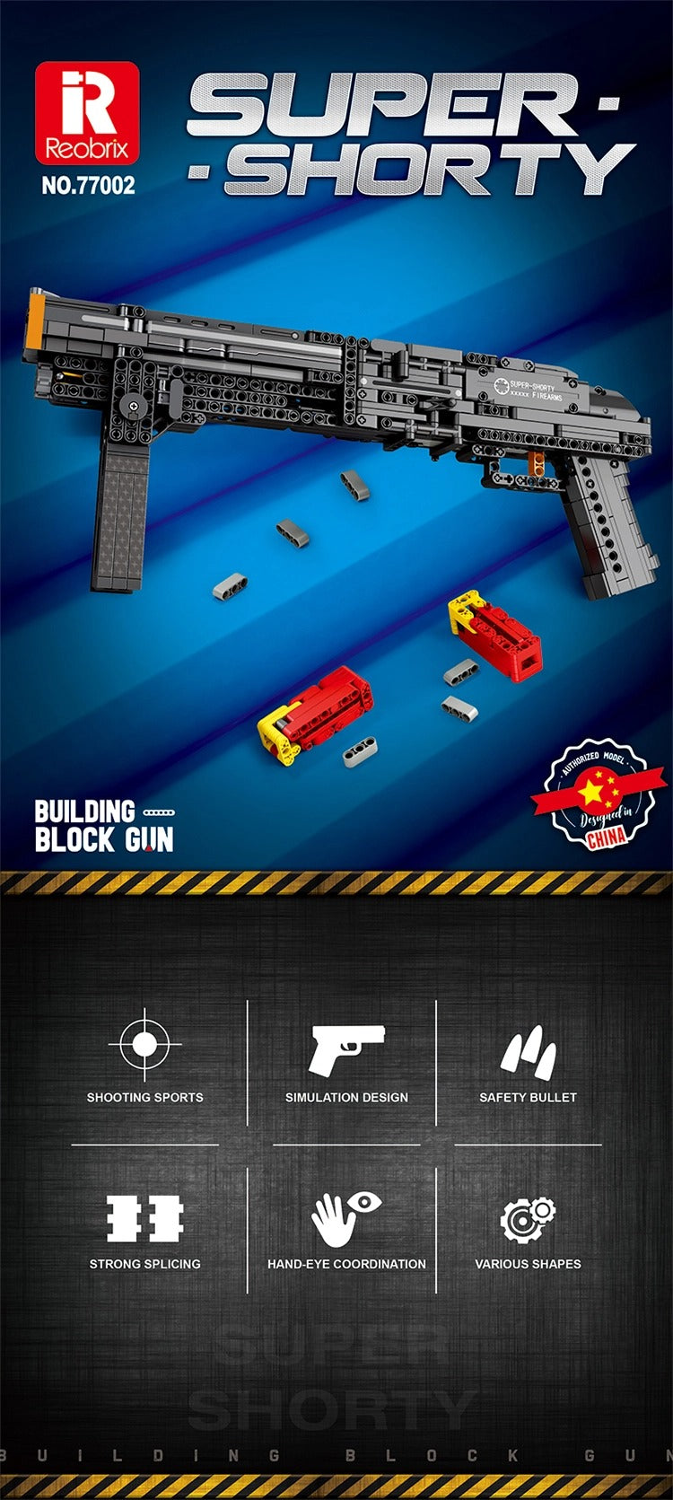 - A Building Adventure: Dive into a building experience like no other with 882 high-quality blocks. The Reobrix 77002 toy gun building kit comes with clear, easy-to-follow instructions, making it an excellent activity for family bonding or a satisfying solo project that boosts fine motor skills and fosters creativity.