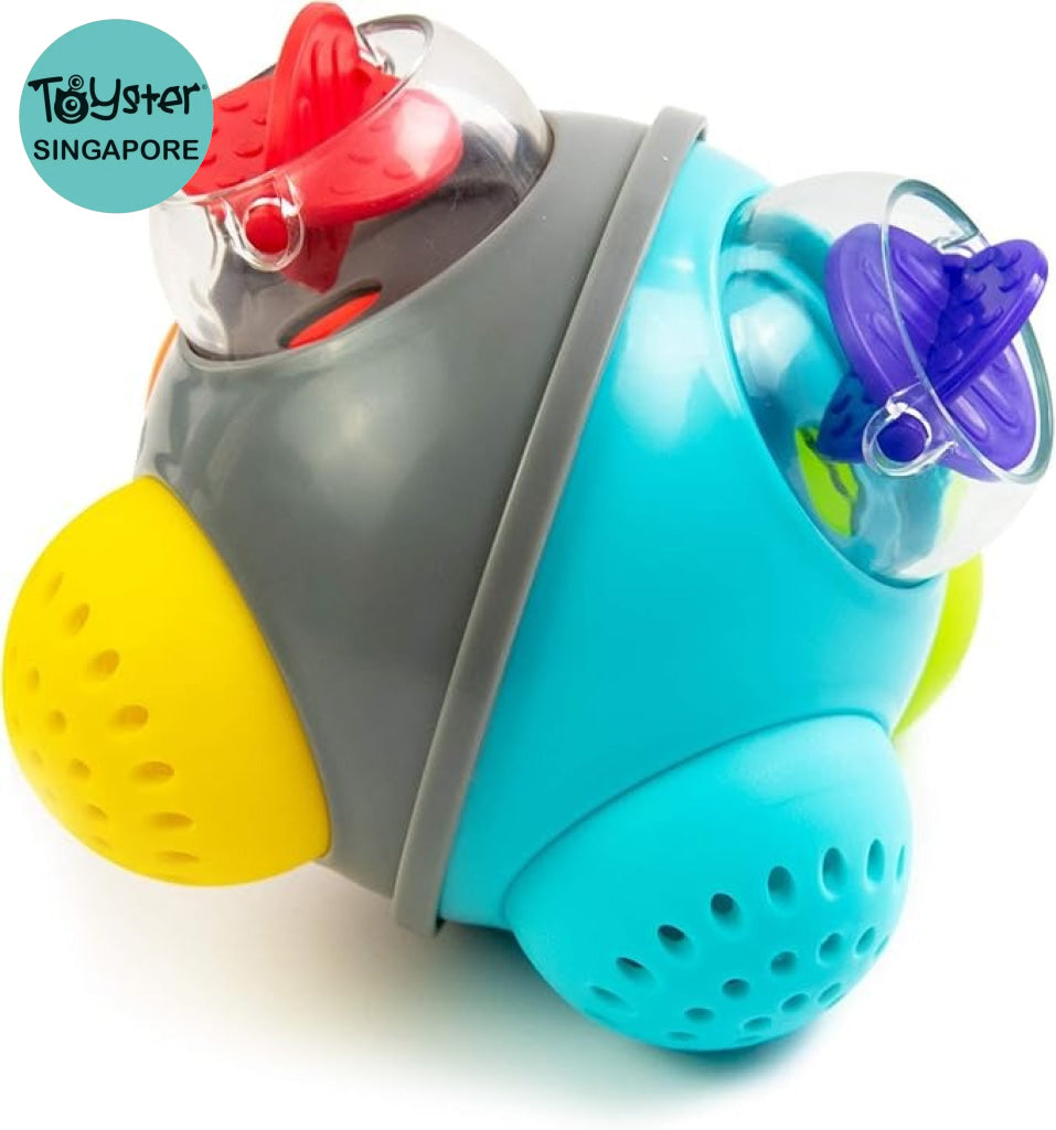 - Chunky sized bumps encourage tactile interaction, grasping, and transferring from one hand to the other
