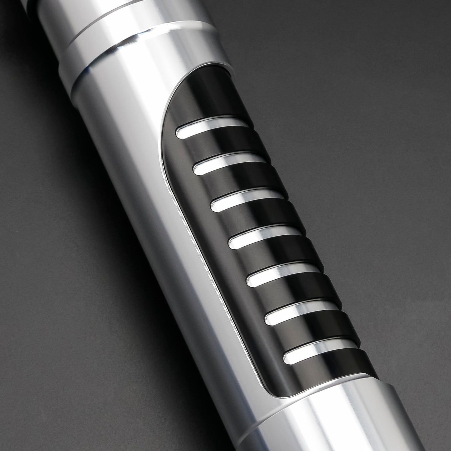 The grip is designed to be both comfortable and sophisticated, supporting both an energetic dueling style and thoughtful, focused technique. The ergonomic design ensures that each wielder can participate in long practice sessions and fully demonstrate the wielder's lightsaber skills.