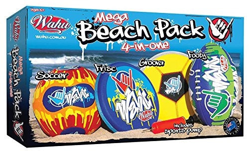 You'll have all the angles of fun covered with the Wahu Mega Beach Pack. This pack contains a footy ball and a soccer ball, both made with waterproof neoprene skins; as well as two superb flying discs, the Groova and the Frisc. There will be ample balls and discs to toss, boot or glide over sand, lake, parkland or in your backyard. A perfect pack for crowds of teens on a warm summer's day.