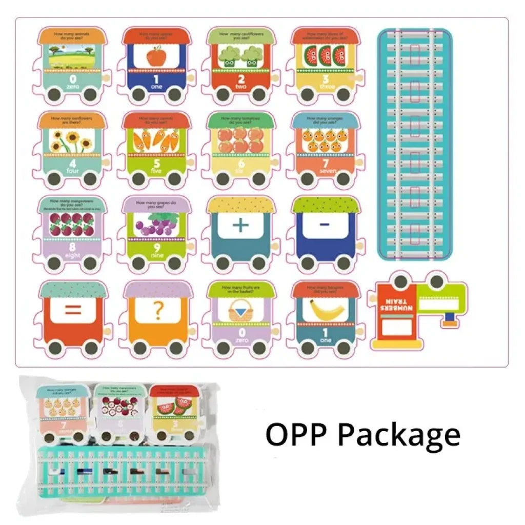 Package includes: 26* letter train cards, 1* locomotive, 1* train track