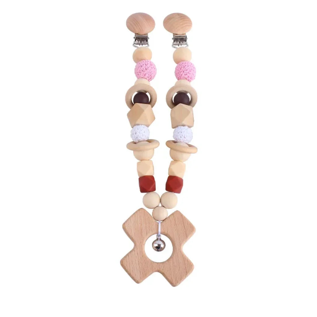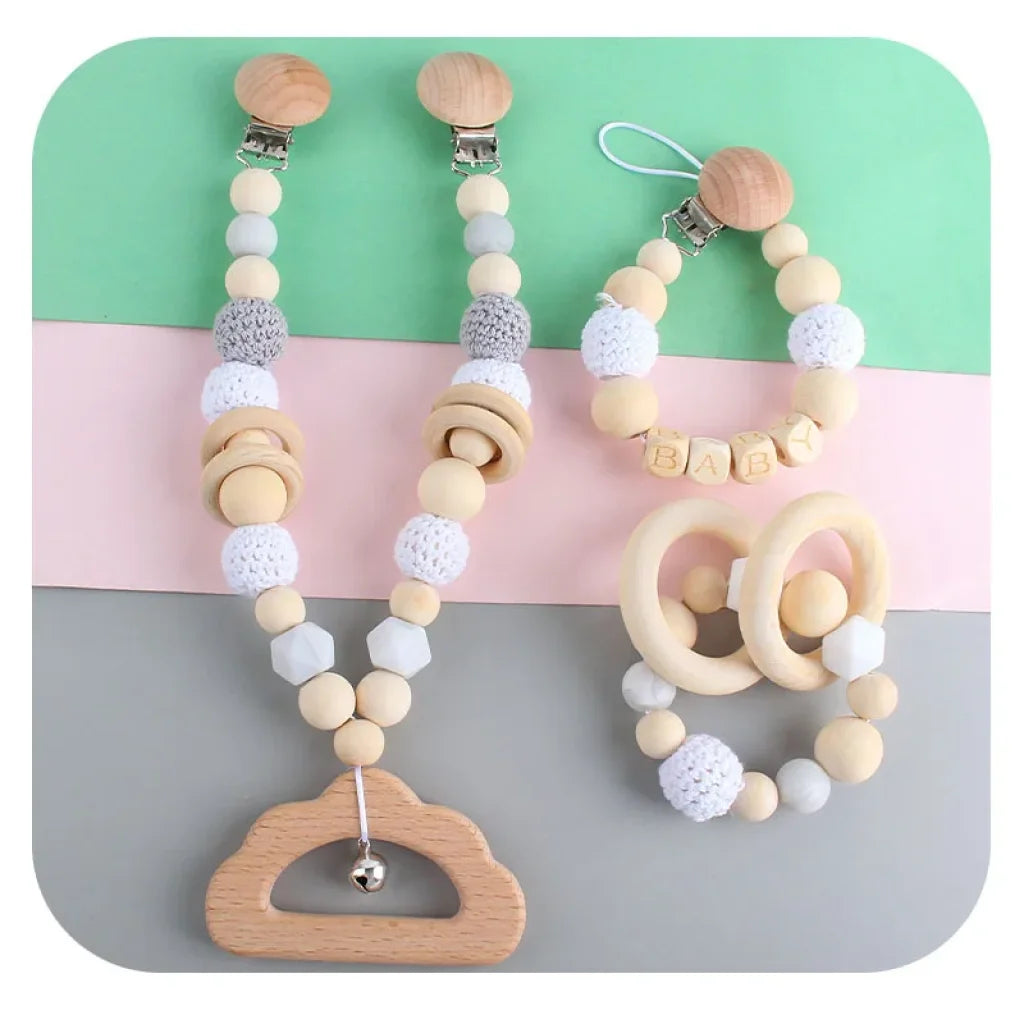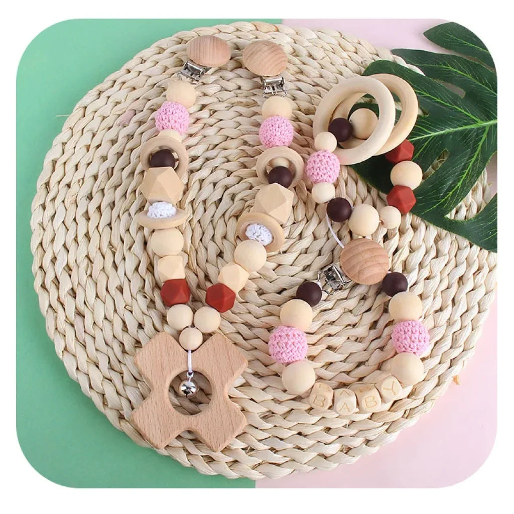 Baby Rattles Wood Crochet Beads Bracelet Pram Clip
