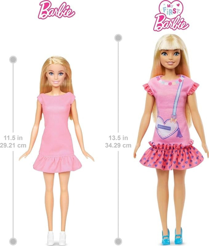 Introducing My First Barbie, a collection designed for preschoolers! This sweet line features larger dolls that are easy-to-dress and have poseable, soft-touch bodies. From friendship to fashion, kids can create countless stories with these adorable dolls! Each sold separately, subject to availability. Barbie dolls cannot stand alone. Colors and decorations may vary.