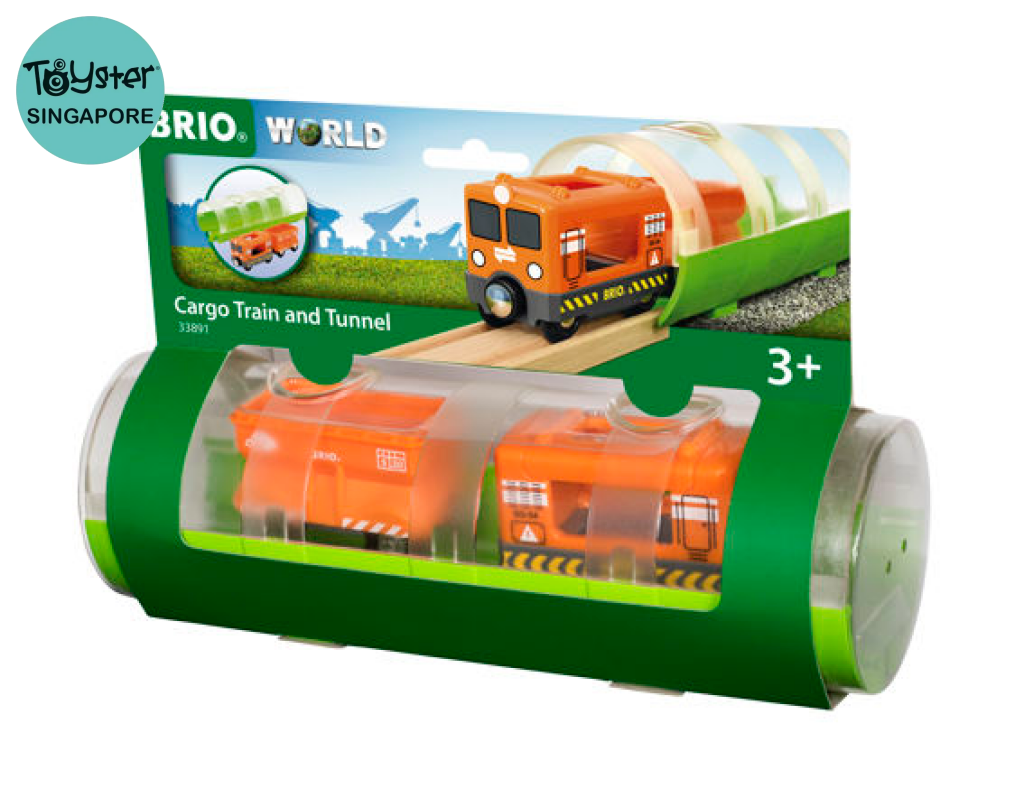 Haul the heaviest loads with the BRIO World Cargo Train & Tunnel. This toy train engine goes up and down hills and through valleys to deliver the cargo to any harbour or transport hub in BRIO World. There’s even room for an engine driver on-board too. The clever packaging around the Travel Train also transforms into a stylish see-through tunnel – just place it into any BRIO World wooden railway track and off you go. Happy hauling!