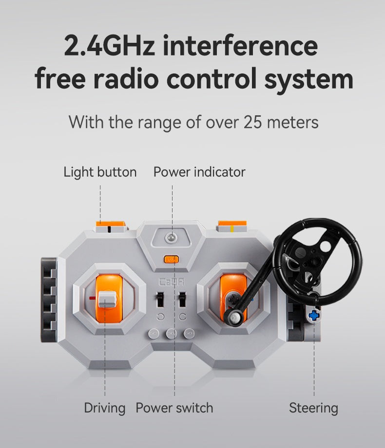 1. The remote control controls forward and backward, left and right steering linkage steering wheel.