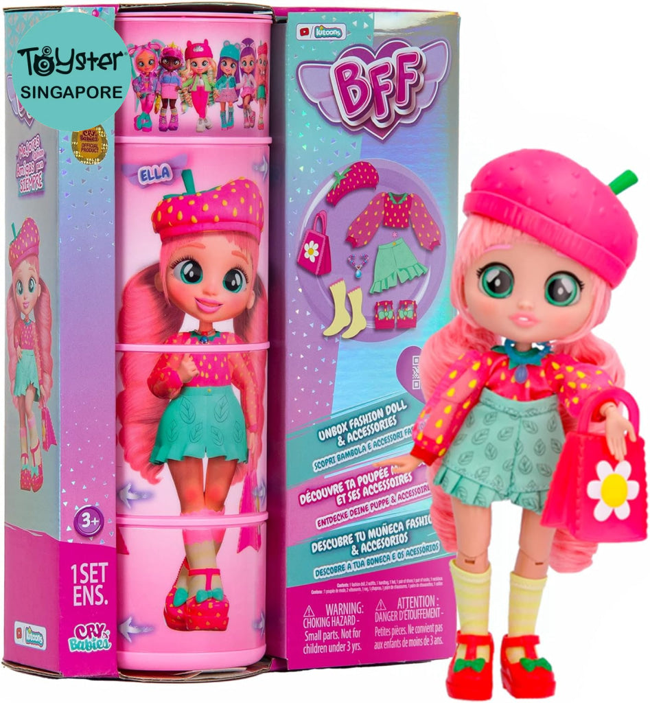 - UNBOX 8+ SURPRISES including a BFF fashion doll, fashions, and accessories!