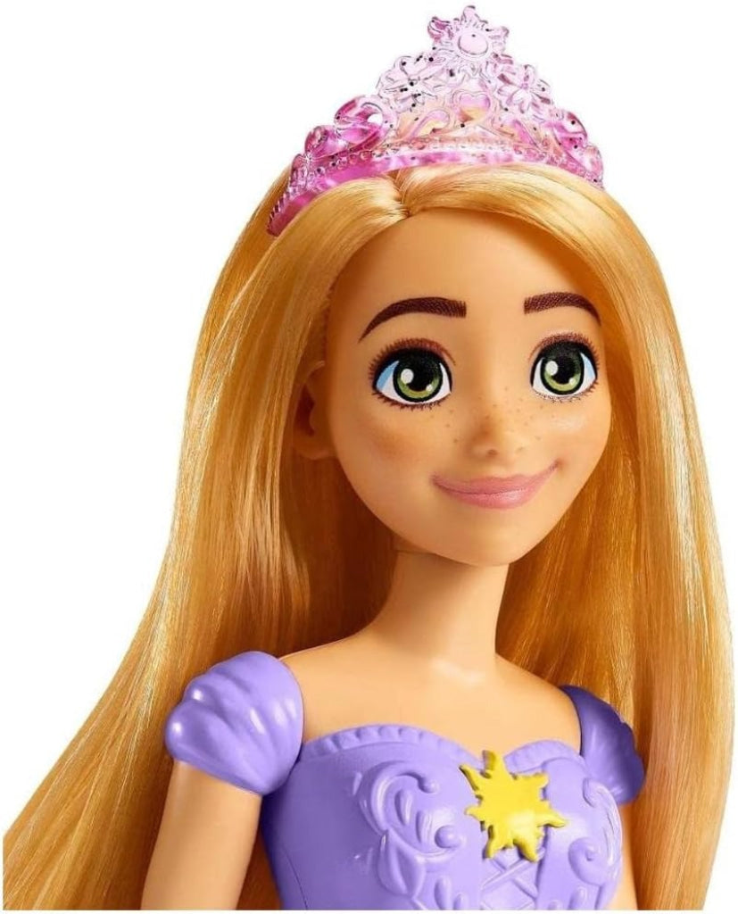 - Her outfit includes a glitter top and removable skirt with a storytelling pattern unique to Rapunzel