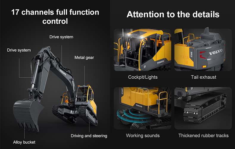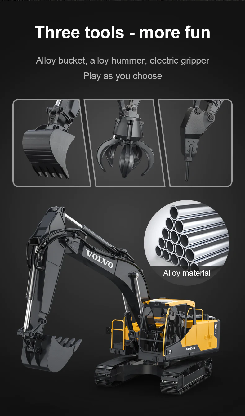 DOUBLE E Licensed Volvo 3 in 1 Alloy Excavator RC 1/16 E598