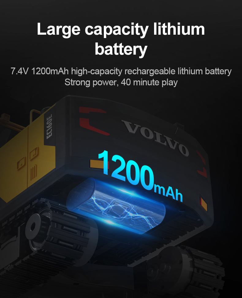 It's equipped with working lights and sounds that make it feel like an authentic Volvo machine! Have more fun with the dual control system: a phone App features drag and drop control system which allows to plan and execute sequences of movements - pretty cool!